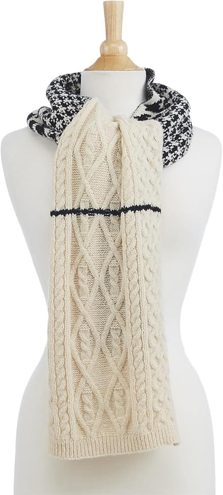Two's Company Pattern Play Multi Size Hounds Tooth Print with Mix of Knit Patterns Scarf, 72-inch Length, Polyester, Women Accessories, Multicolor, 14" W x 72" L