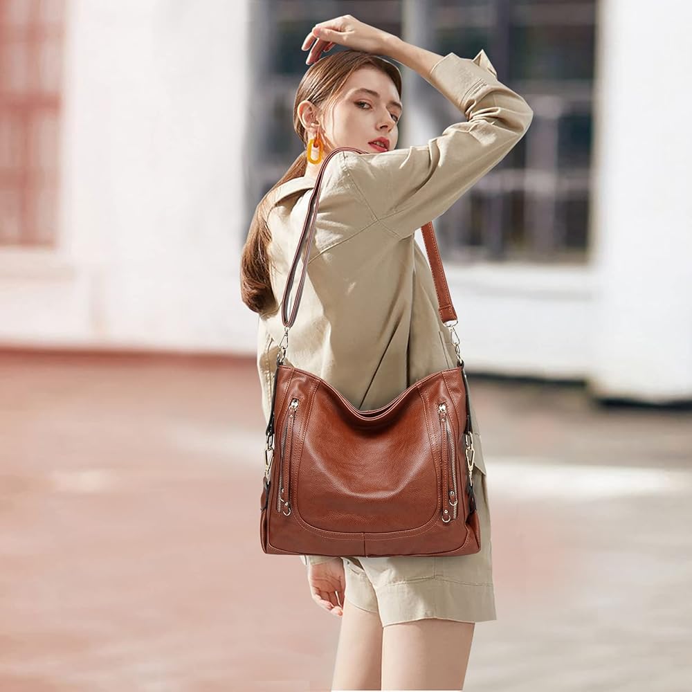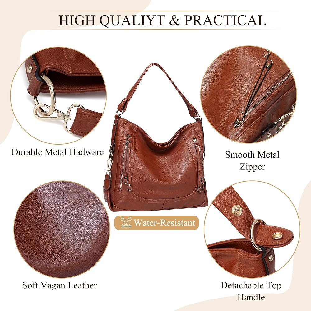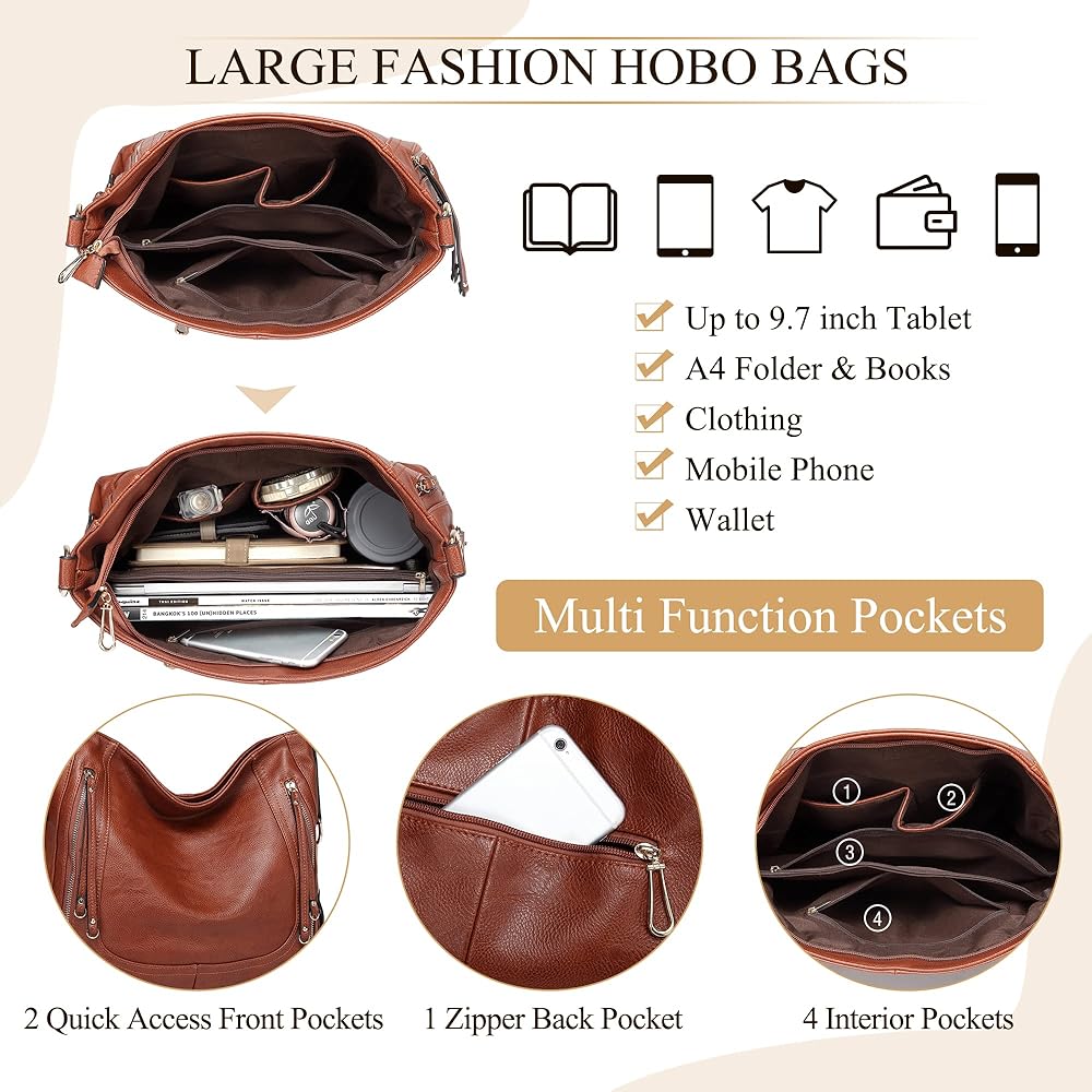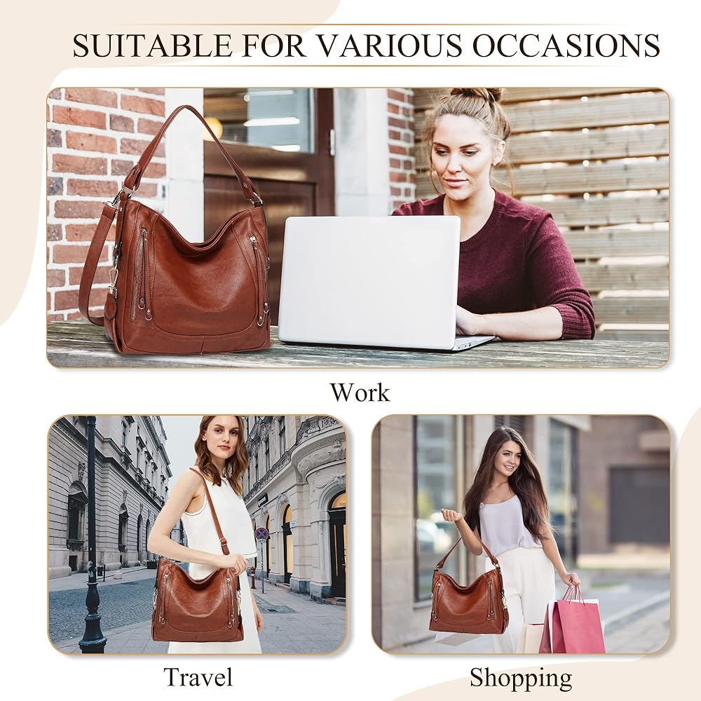 ❉ مادة جلدية وتصميم خاص: حقيبة اليد النسائية من Kasqo مصنوعة من جلد البولي يوريثان الناعم عالي الجودة وأجزاء صلبة ذهبية متينة. إنها حقيبة يد جلدية عصرية تتميز بالجودة العالية والسعة الكبيرة والتصميم الخاص. تصميم خياطة أمامي على شكل حرف U، جزء سفلي معزز مع زخرفة خطافية خاصة، وسحّابان جلديان طويلان جدًا مما يجعل حقيبة هوبو أكثر متانة للاستخدام اليومي للسيدات.