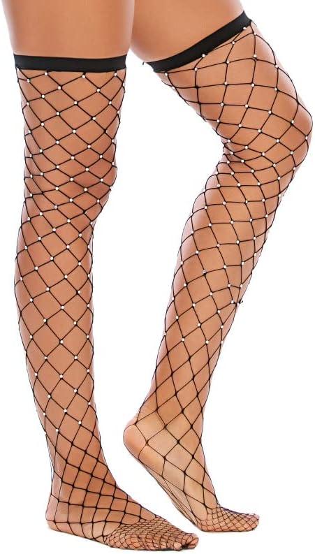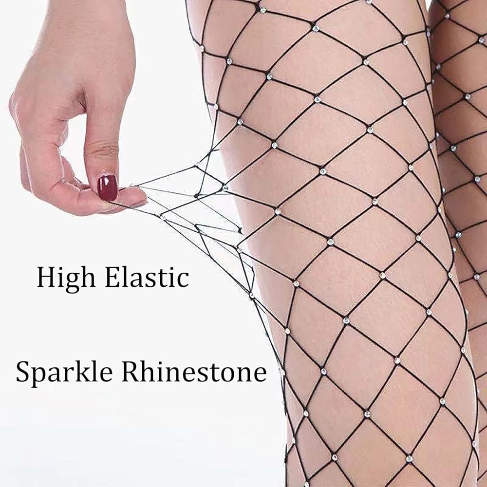 SAFSOU جوارب عالية الفخذ من شبكة صيد السمك، جوارب طويلة لامعة، جوارب شبكية من حجر الراين