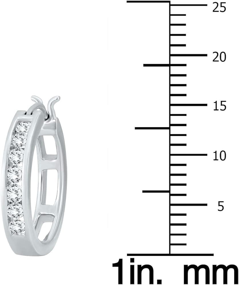 زوج كلاسيكي من الأقراط الدائرية المصنوعة من الألماس الدائري مصنوعة من الذهب الأبيض عيار 10 قيراط. 14 ماسة تزن 1/2 قيراط. الأقراط آمنة بمشابك سفلية. يبلغ قطر الأقراط 16 مم (أقل قليلاً من 3/4 بوصة) للحصول على مظهر من النوع الضخم. تجتمع أعلى مستويات التصنيع والألماس المختار والمطابق يدويًا لتكوين زوج متين من الأقراط رائع للارتداء اليومي.