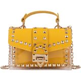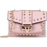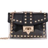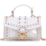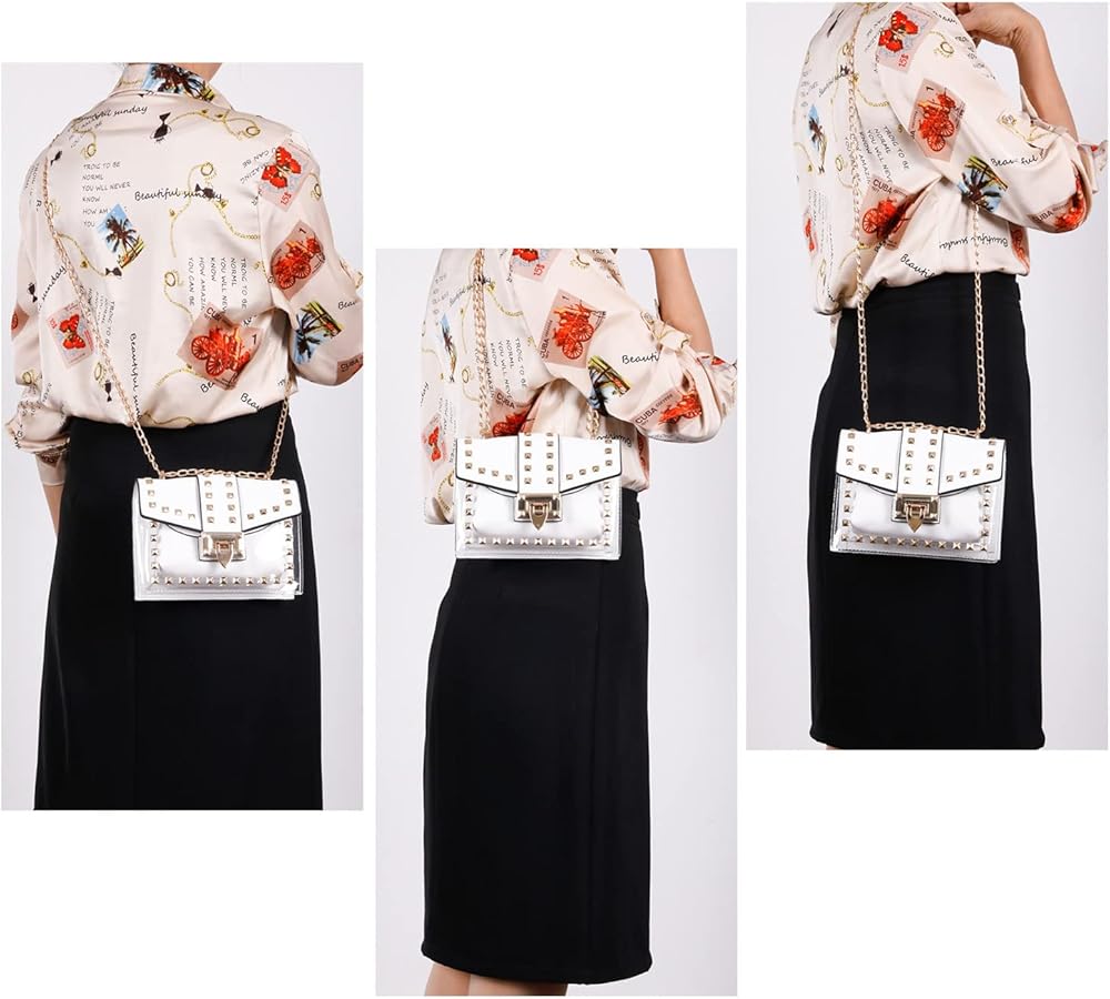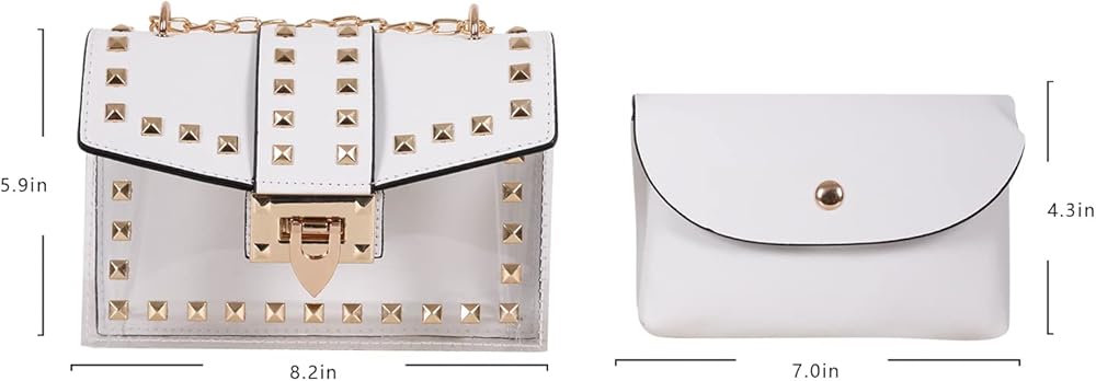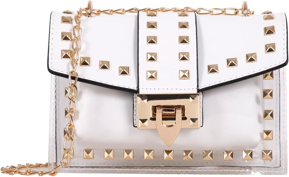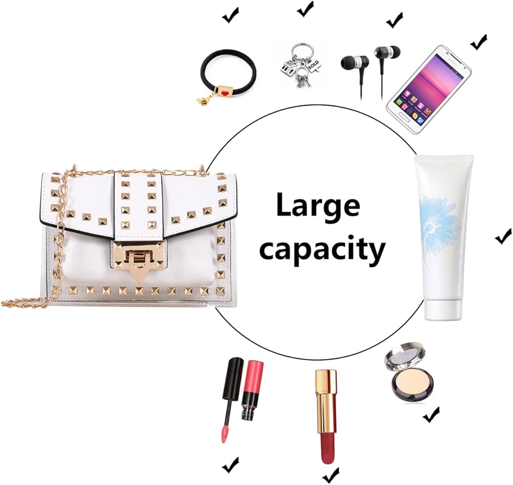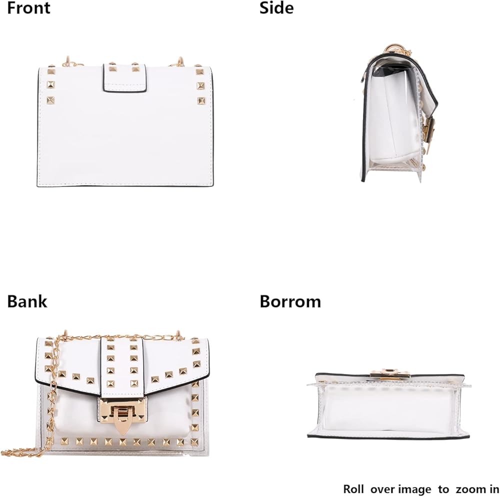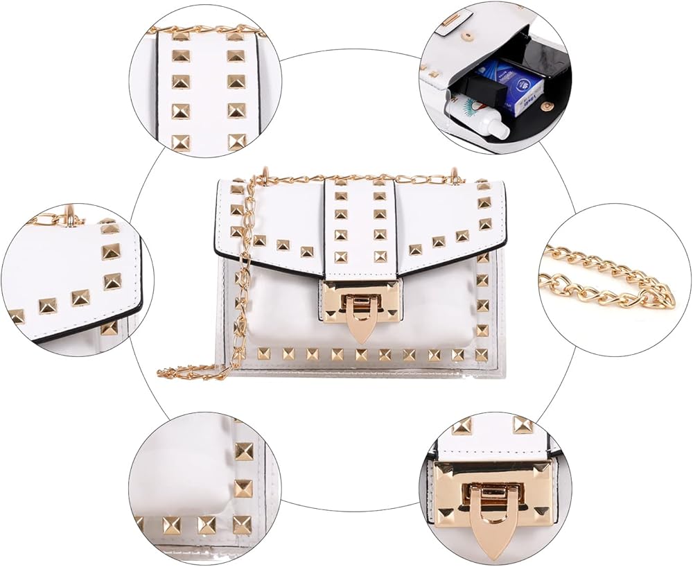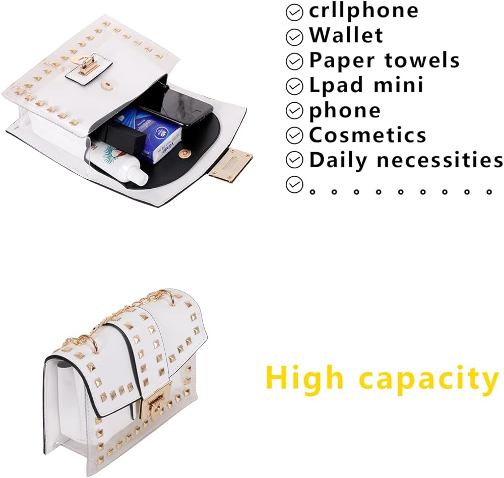 【حقيبة كتف 2 في 1】حقيبة يد شفافة تتميز بنمط 2 في 1 مع حقيبة جلدية، وتصميم برشام وحزام سلسلة، وحرفية رائعة لشعور عالي الجودة، وخفيفة الوزن ومتينة.