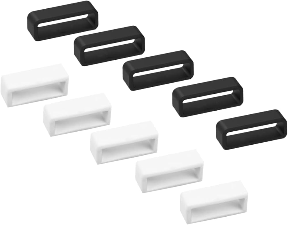 【PRODUCT SIZE】The size of a single silicone rubber strap is 2.6*1*0.8cm, which is light in weight and small in size.A set of ten silicone fixed straps, including 5 black straps, 5 white straps, all 22mm straps.