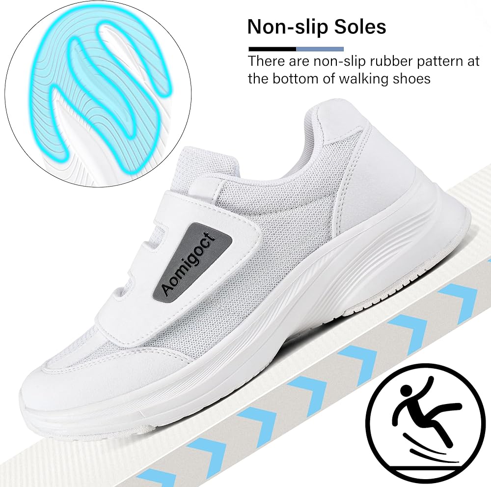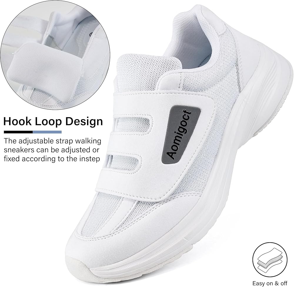تصميم خاص: تركز أحذية المشي هذه على الاحتياجات الصحية للمرضى الذين يعانون من مرض السكري والوذمة والقدم المتورمة، مما يوفر لك مجموعة كاملة من الرعاية والراحة حتى يتم العناية بقدميك دائمًا. وفي الوقت نفسه، مع تصميم حلقة الخطاف ، هذه الأحذية الرياضية مناسبة للمناسبات غير الرسمية والكسولة