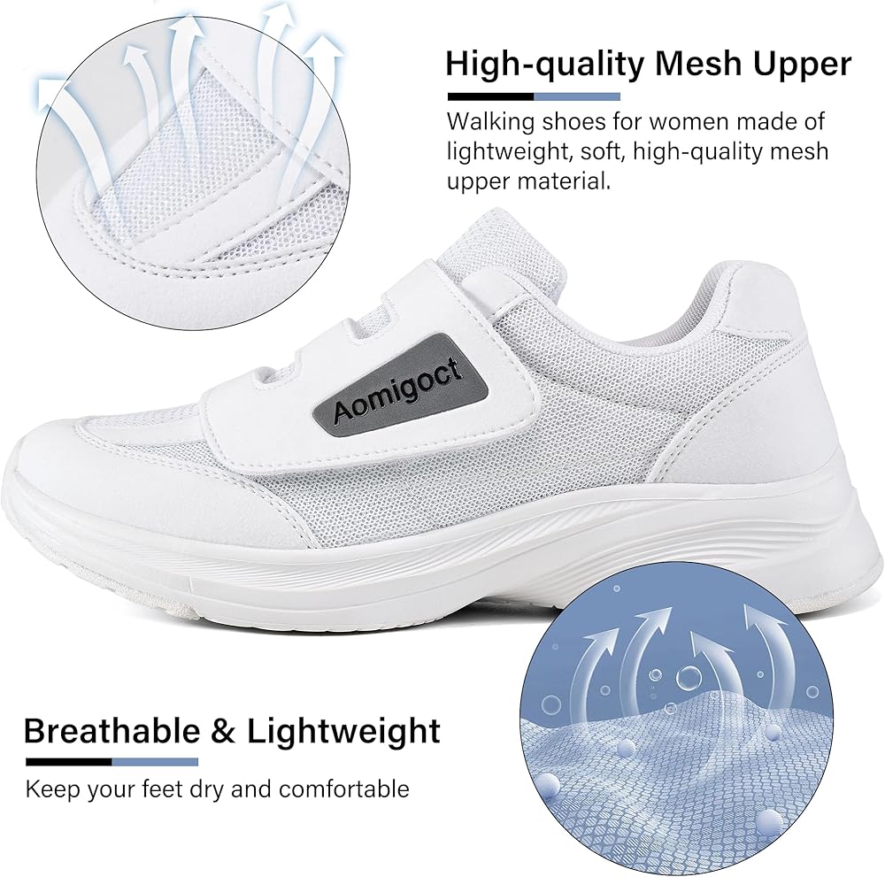 مسامي وخفيف الوزن: أحذية مشي للسيدات مصنوعة من مادة علوية شبكية خفيفة الوزن وناعمة وعالية الجودة، تحافظ على قدميك جافة ومرتاحة لفترة طويلة، سواء كانت للأنشطة اليومية أو الرياضات الخارجية