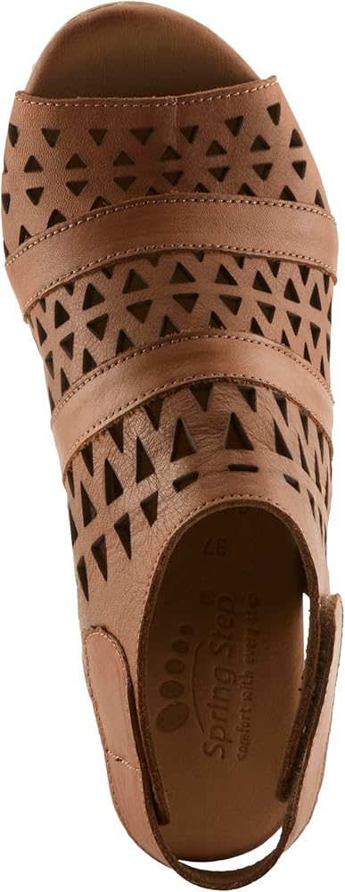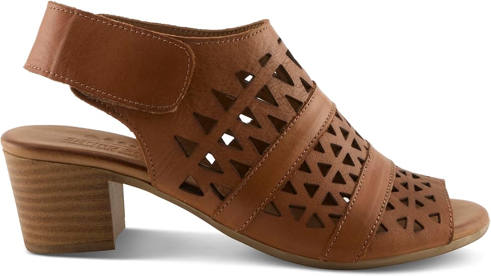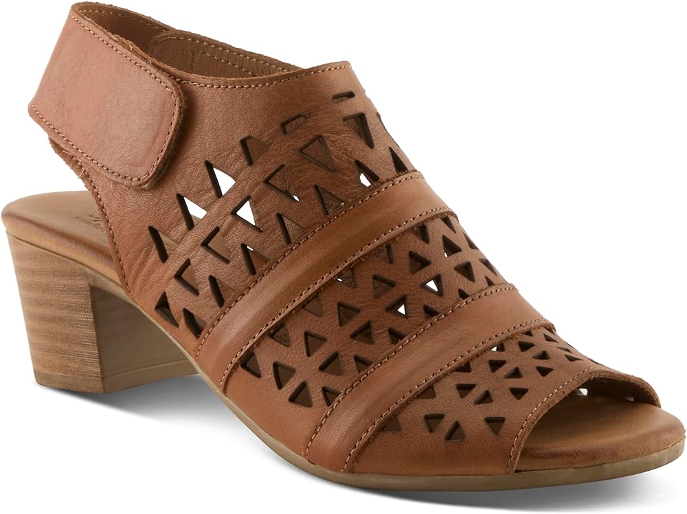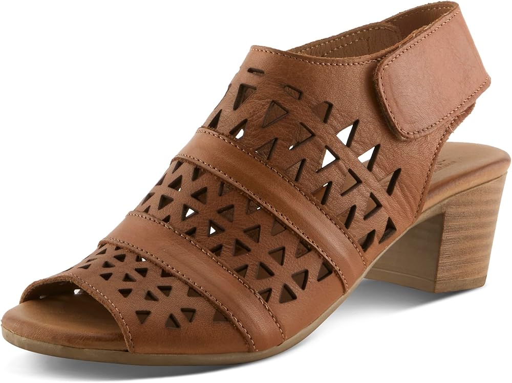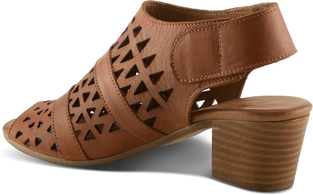 Classic leather sandal featuring laser cutouts and an adjustable backstrap.