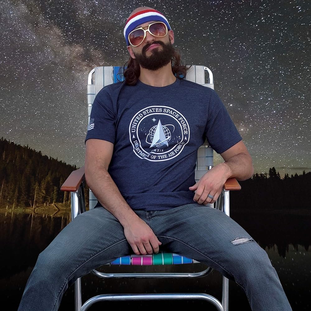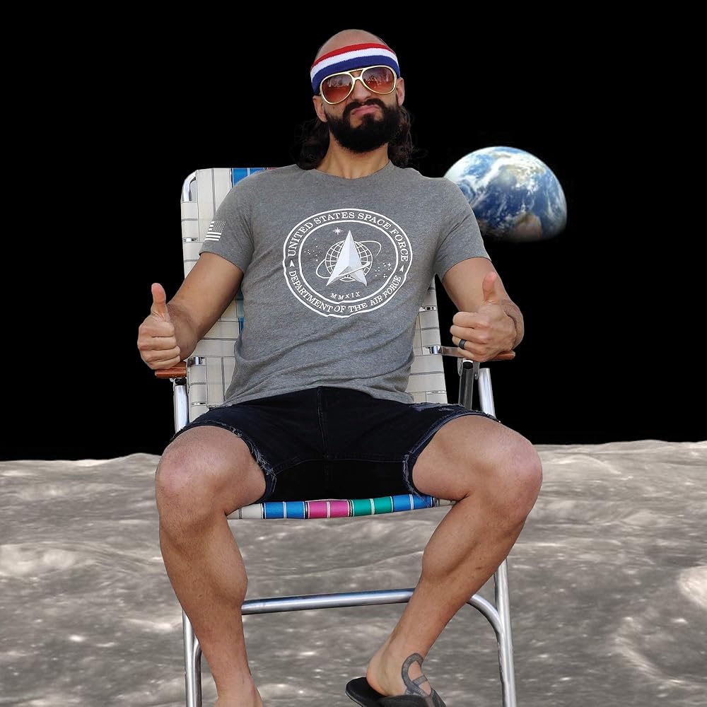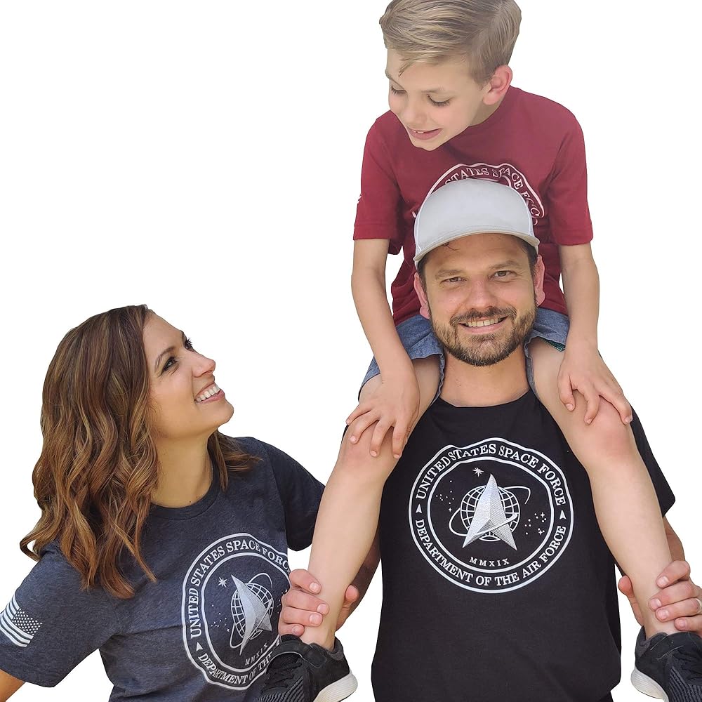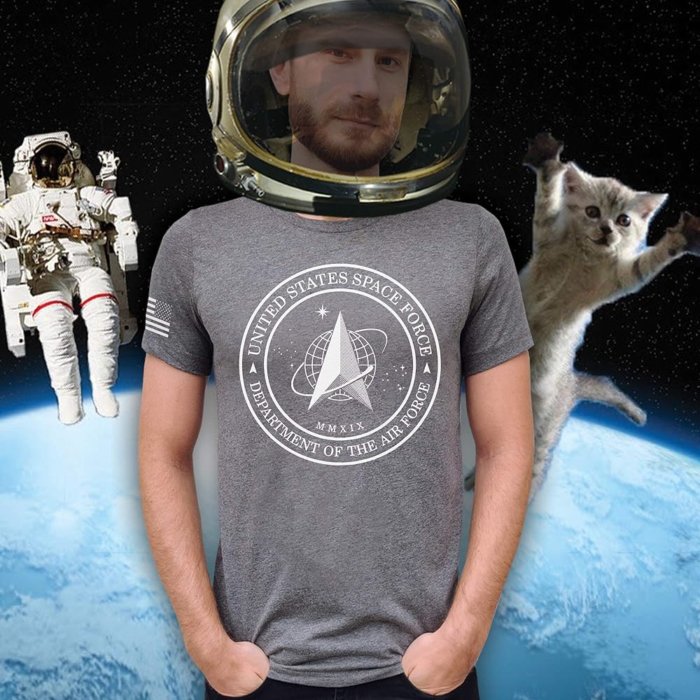 The graphic on this shirt has the logo the newest branch of the military — The Space Force! Wear this tee with pride as you represent our belief in the forward-thinking and bravery of our military. Made with a super soft and premium material printed with the highest quality inks. This shirt is guaranteed to make you look and feel more confident. This unisex t-shirt fits as you would expect with a light-weight material. If there is any shrinkage, it will be minimal. If you are between sizes, we'd suggest you go up to the next size. Tumble dry low or hang to dry.