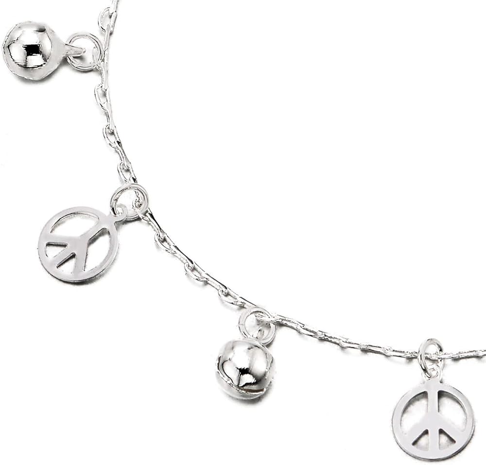 Link Chain Anklet Bracelet with Dangling Anti-war Peace Sign and Jingle Bell, Adjustable, not-applicable