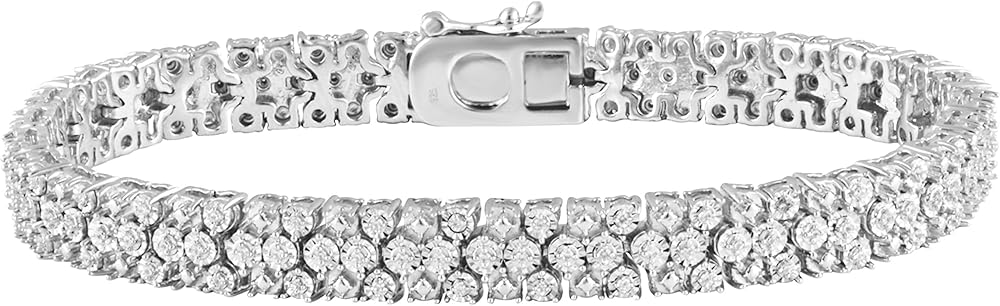 مجموعة La4ve Diamonds 1/2 قيراط من الألماس، مجموعة من الفضة الإسترلينية مطلية بشكل معجزة بسوار من الألماس المستدير (J-K، I2-I3) مجوهرات ألماس حقيقية للنساء | صندوق هدايا متضمن