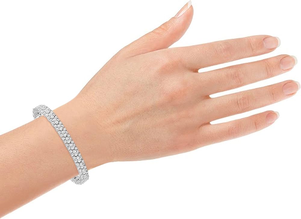 مجوهرات الزفاف: مع الجمال المبهر، يسرق هذا السوار الماسي الأضواء. مصنوعة من مجموعة شوكات من الفضة الإسترلينية، وألماس دائري - كل مجموعة بشكل فني لتعزيز الحجم والتألق. آسر بـ 0.50 قيراط من الماس مما يجعله خيارًا مثاليًا لشريكك! لمسة نهائية معدنية لامعة تضيف لمسة من اللمعان اللافت للنظر إلى ملابسك، بأسلوب كلاسيكي وأنيق. إكسسوار أنيق مثالي لملابسك للمناسبات اليومية والرسمية.