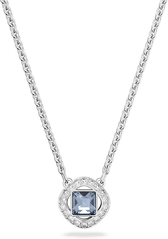 العناصر التي تم تسليمها: (1) قلادة Swarovski Angelic Square مع كريستالة مربعة زرقاء رائعة مؤطرة بدائرة من الكريستال الشفاف على إطار نهائي من الروديوم، مكتملة بصندوق قلادة سواروفسكي