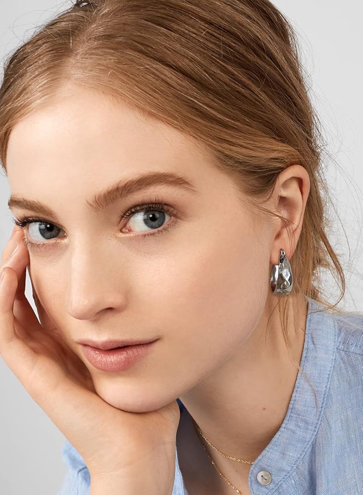 【أقراط نسائية دائرية مكتنزة】نحن نصنع الأقراط بعمود من الفولاذ المقاوم للصدأ مما يجعلها لا تسبب الحساسية. انسَ جميع الأقراط الحلقية الرخيصة الأخرى التي قد تسبب تهيج الجلد والطفح الجلدي أو تتحول إلى اللون الأخضر بعد استخدامها بعد بضعة أيام. استمتع بجودتنا العالية المطلية بالذهب الحقيقي، ولن تسبب الحساسية لبشرتك الحساسة. كما أنها لن تحول أذنيك إلى اللون الأخضر. إنها بسيطة وبسيطة ولكنها رائعة وأنيقة، سوف تحصل على قدر كبير من الإطراء.
