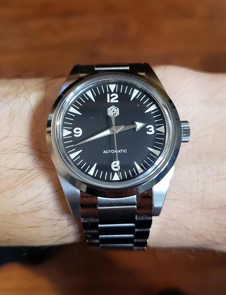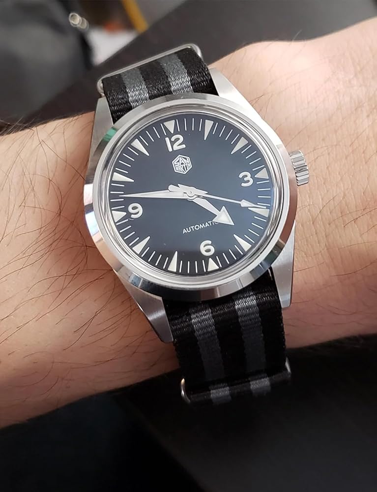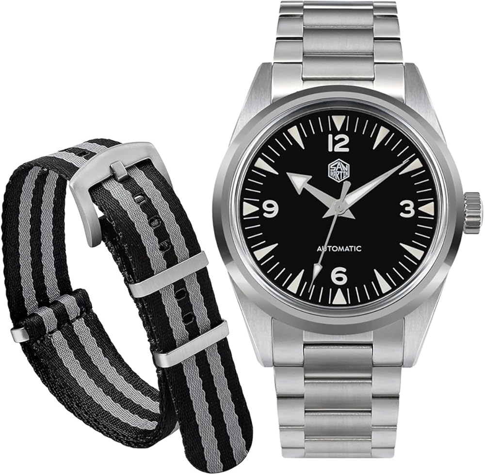 ساعات سان مارتن للرجال، حركة NH35 SN0113W ساعة أوتوماتيكية مع سوار بمشبك فراشة وحزام من النايلون