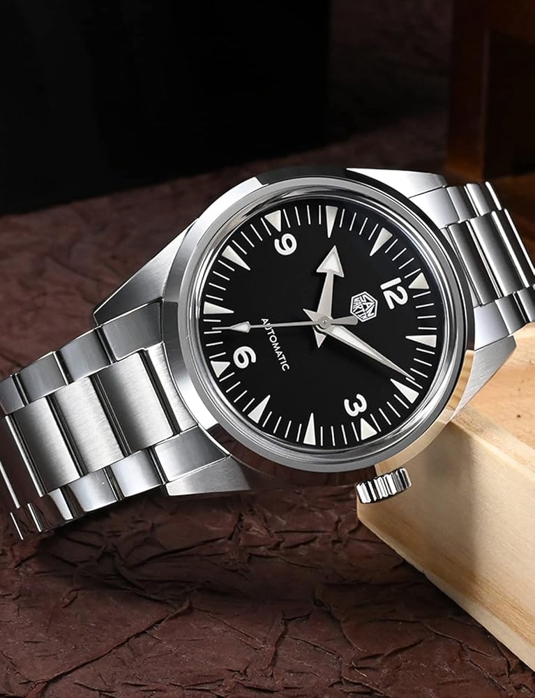 • 𝗡𝗛𝟯𝟱 𝗠𝗼𝘃𝗲𝗺𝗲𝗻𝘁: Powering the San Martin SN0113W watches is NH35 movement, its high beat rate of 21,600 vibrations per hour, ensures exceptional accuracy, keeping time with incredible precision. 24 jewels, which reduce friction and enhance the overall durability of the movement, second stop device, power reserve can last for 41 hours.