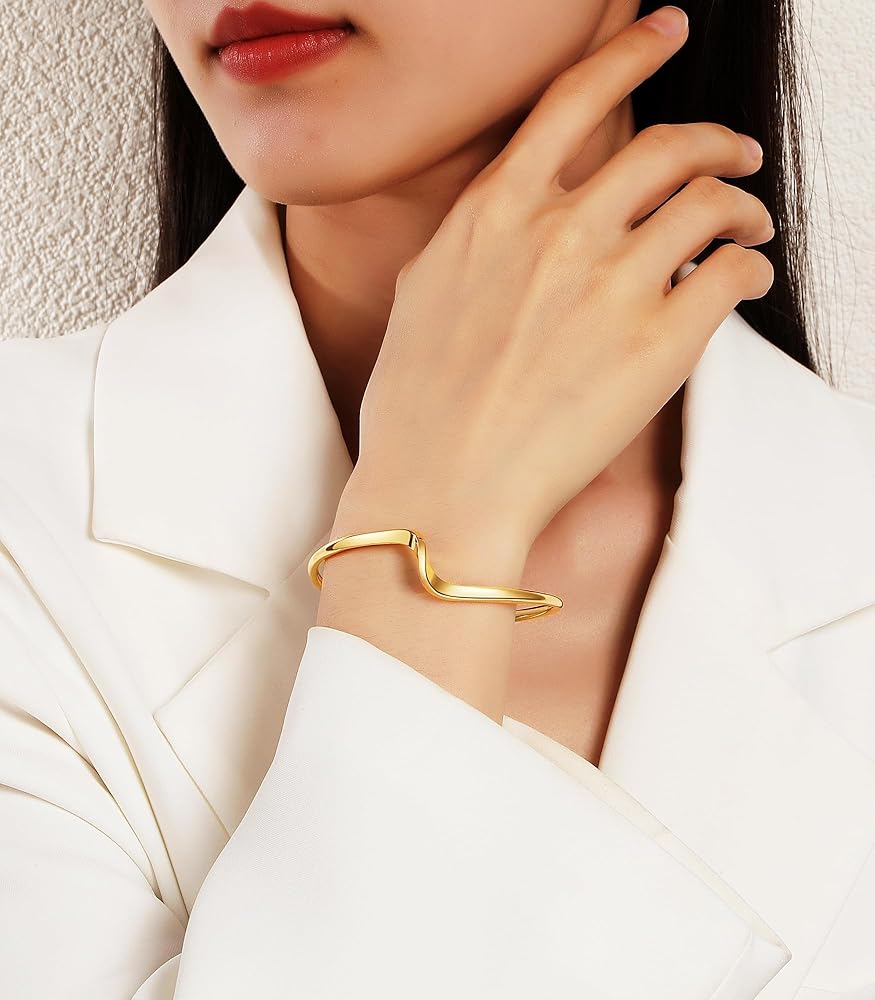 ✦ حجم السوار المثالي ✦ الأساور الذهبية للنساء مصنوعة بخبرة من طلاء الذهب عيار 14 قيراط عالي الجودة. إنه ينضح بالأناقة والرقي، ويضيف لمسة من السحر إلى أي ملابس.
