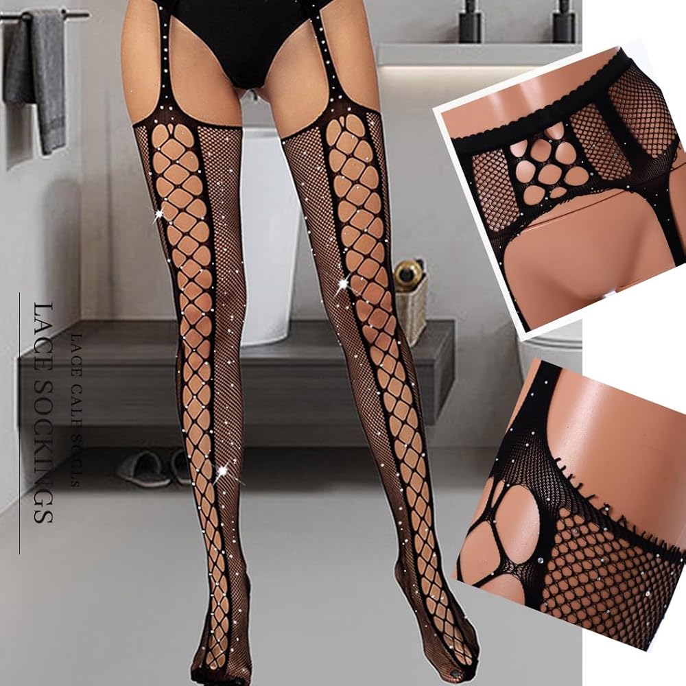 (التصميم): جوارب شبكية من حجر الراين، أنماط مختلفة، تصميم مجوف، النمط الموجود على الفخذ فريد من نوعه، أنماط وألوان مختلفة، وفقًا للاحتياجات المختلفة للاختيار.