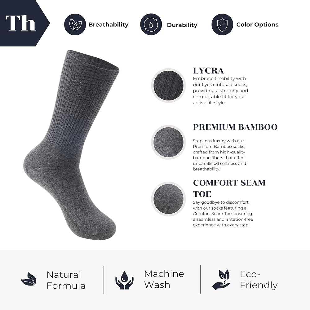 فخامة سلسة: استمتع بالتصميم السلس الذي يجعل هذه الجوارب المصنوعة من الخيزران للنساء والرجال متعة حقيقية. طبقات ناعمة لا يلاحظها أحد، مما يوفر إحساسًا بالراحة النقية. ارتدي زوجًا من الجوارب الرجالية المصنوعة من الخيزران القابلة للتمدد والتي تشعر وكأنها عناق لطيف على بشرتك، مما يوفر لمسة فاخرة لروتينك اليومي.