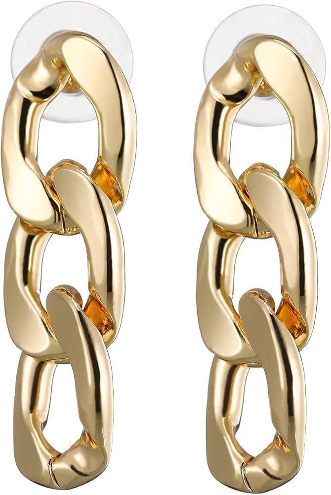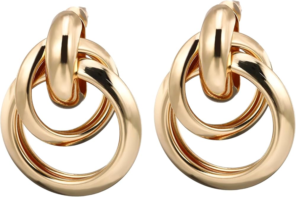 أقراط كبيرة باللون الذهبي: رائعة وفريدة من نوعها، يمكنها أن تضفي انطباعًا رائعًا مع أي ملابس؛ الطول حوالي 0.8 إلى 2 بوصة (2-5.5 سم)؛ مناسب للنساء والفتيات من جميع الأعمار.