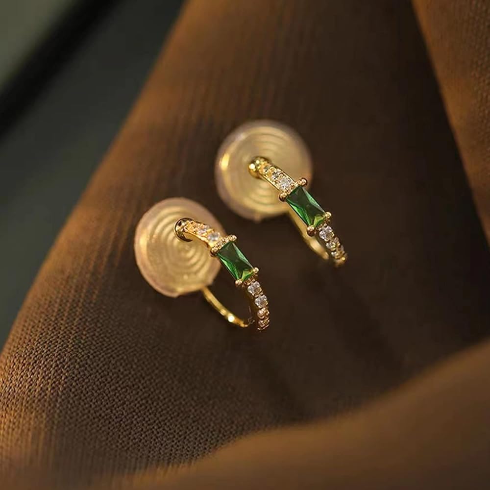 Yurielys Clip on Hoop Earring, 16K Gold Plated Cubic Zircon Open C Small Emerald Hoop Earrings, Fake Piercing Minimalist Earrings for Women Girls, Small, Cubic Zirconia, Cubic Zirconia