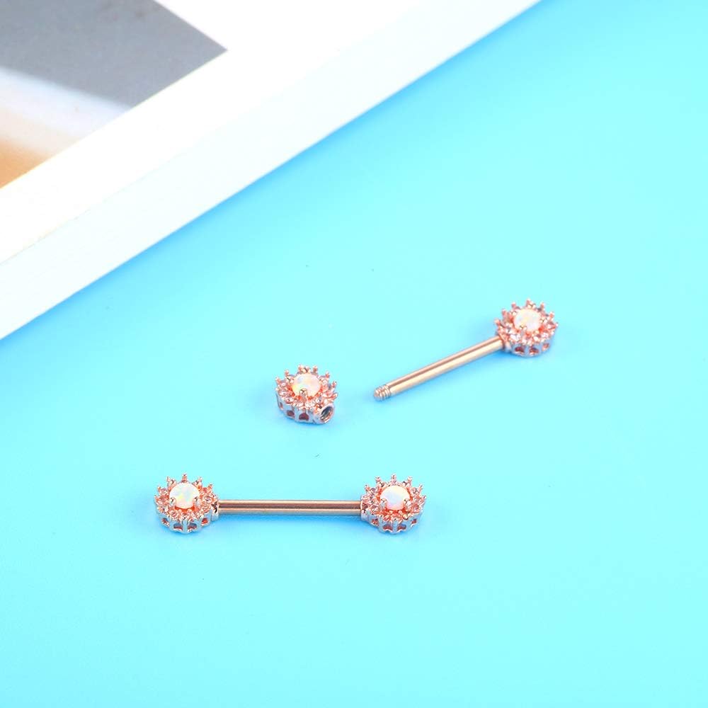 NIPPLE PIERCING DESIGN:Double Ends of Sunflower Can Be Screwed on and off Easily and Conveniently, Not Easy to Slip off,AAAAA+ Cubic Zirconia Filigree with Highest Quality Synthetic Opal Center, Shiny,Elegant & Classic!Suitable for Different Parties, Festivals, Cceremonies, Stage Performance, Daily Life Wear and Many Occasions.Also Can Serve As Gifts for Your Lover,Friends,Families Etc