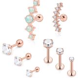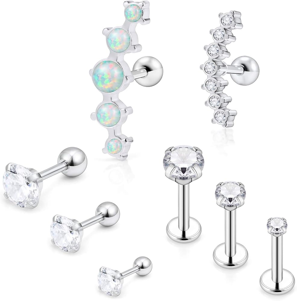 Includes 8PCS Stainless Steel Helix Daith Cartilage Tragus Earrings Barbell Rings Stud Body Piercing Jewelry, Have 8 Styles(Each Style One Piece).
