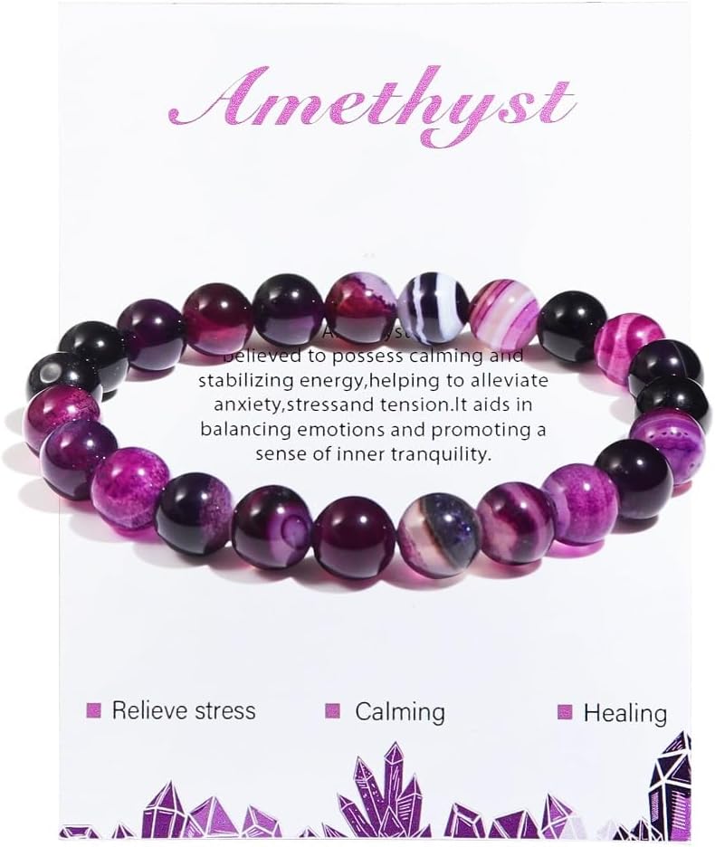 أساور كريستال علاجية: تحتوي هذه المجموعة على قطعة واحدة من أساور الخرز الحجري مقاس 8 مم مناسبة لكل من النساء والرجال. مع مجموعة متنوعة من الخرز الحجري المختلف، لديك خيارات متنوعة لتناسب ذوقك.