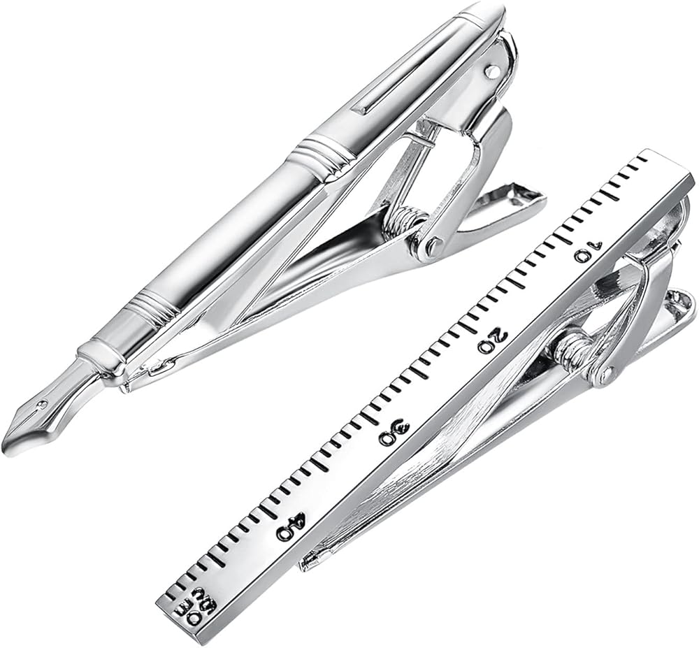 مريح ومريح: مشابك ربطة عنق طويلة: 0.4 سم * 5.3 سم (حوالي 0.2 بوصة * 2.1 بوصة)، مشبك ربطة عنق فضي خفيف الوزن هو الحجم الصحيح، مع مشبك إغلاق، مريح في الارتداء ويناسب معظم الأشخاص