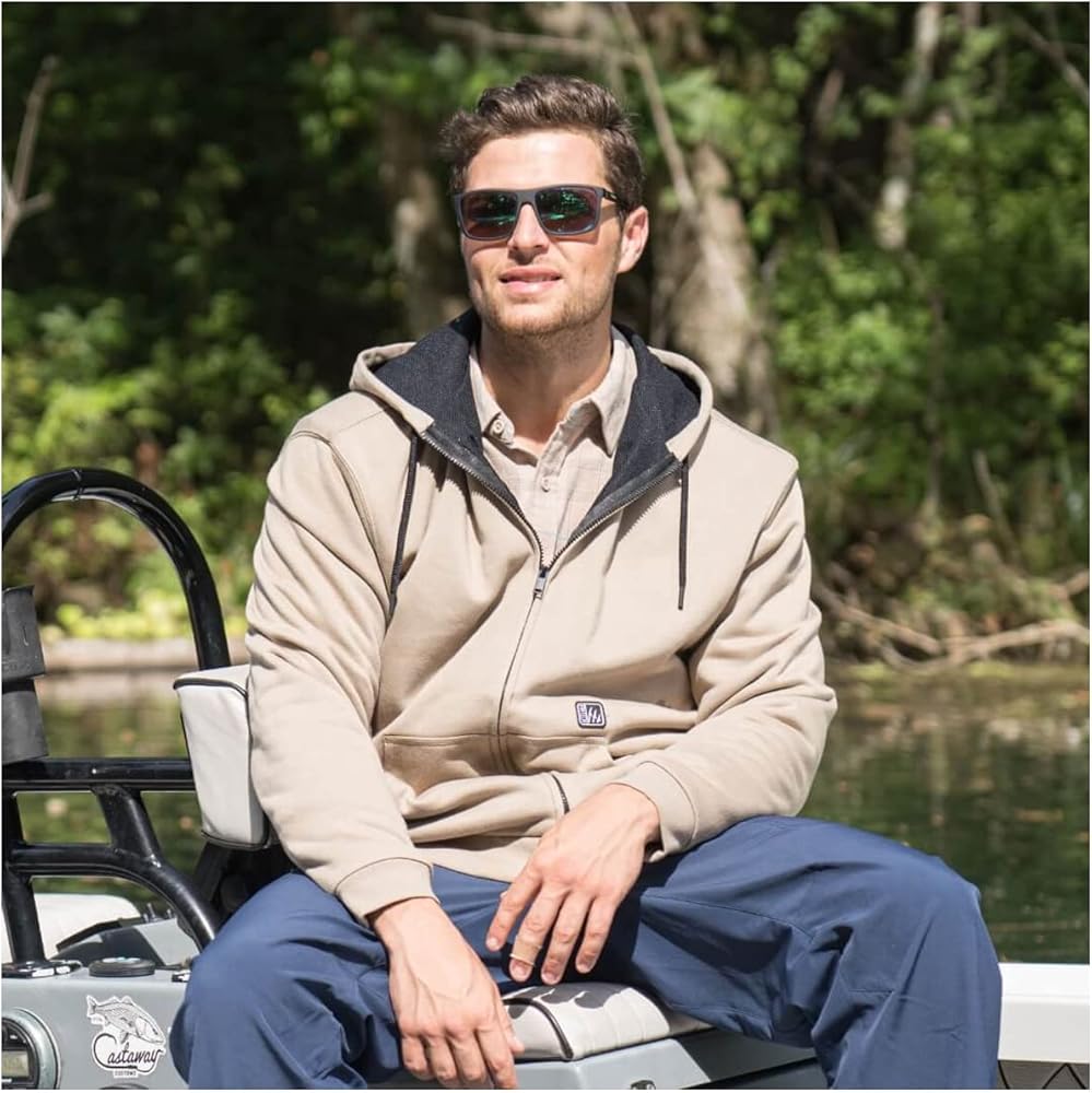 The Fintech Heavy-Duty Fleece Full Zip Hoodie is the ultimate warm hoodie for those cold days! Designed with the outdoors in mind, this hoodie features water resistant properties, mesh liner, and an extended length. This layering piece will give you the protection you need throughout the winter months. Try one and see how Fintech outshines the competition. Features: Professional grade; Ideal for any outdoorsman. Heavyweight 60% cotton, 40% polyester construction. 340 GSM. 3-piece lined scuba hood with draw cord. Mesh lined. Marine grade zipper.