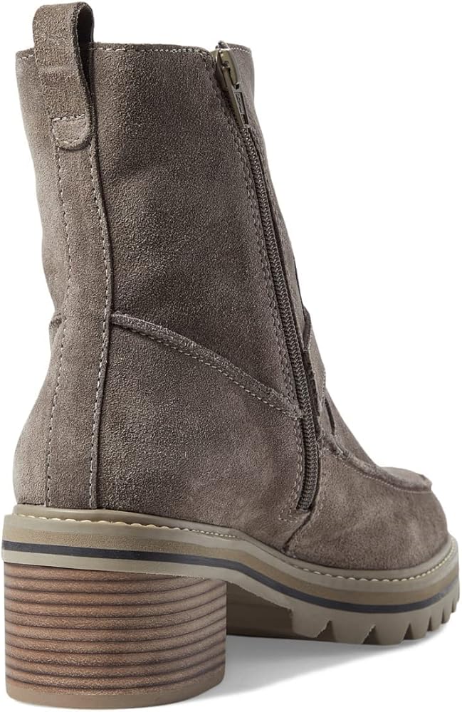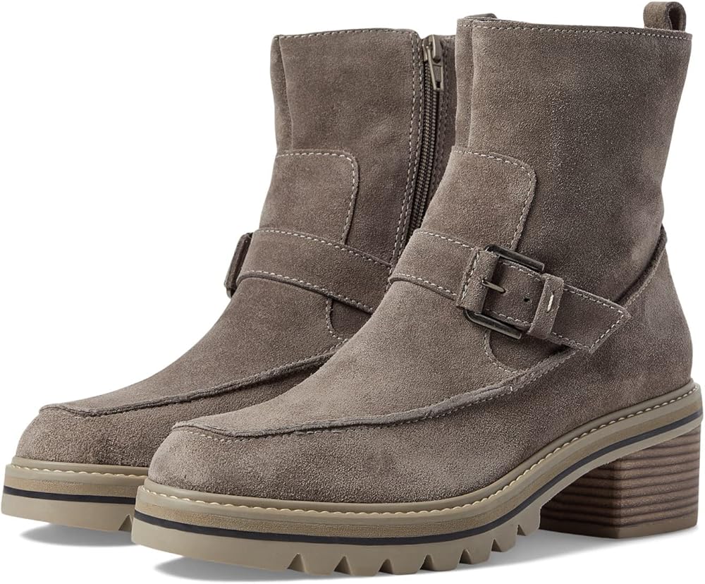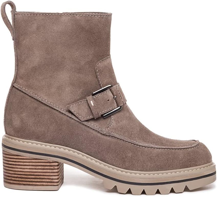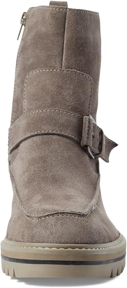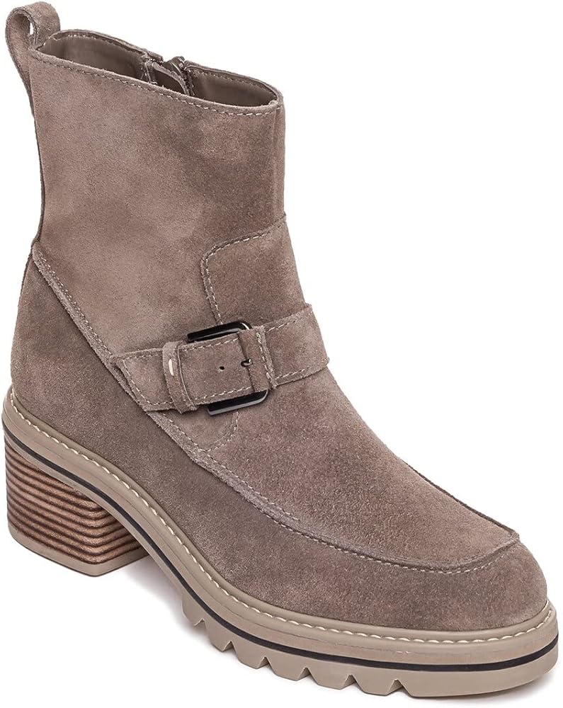 Give your everyday style the perfect amount of edge in the Bernardo Sonja bootie. Inside zipper closure. Round toe silhouette. Decorative buckle strap at ankle. Cushioned footbed offers lasting comfort. Pull tab in back for easy on and off access. Thick lug sole. Leather upper. Leather lining. Man-made insole and outsole. Made in Brazil.