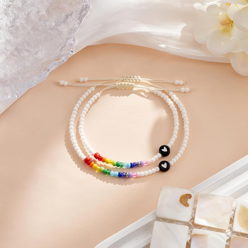 المادة - مصنوعة من خرزات صغيرة وقلب ثم يتم ربطها معًا بحبل مرن قوي. بما أن الأساور مصنوعة يدويًا، فقد تختلف الألوان والأشكال قليلاً عن الصورة، مما يجعل هذا المنتج الجميل المصنوع يدويًا فريدًا مثلك تمامًا!