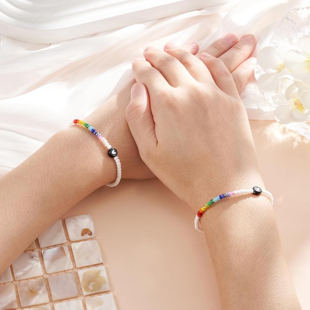 هدايا ذات مغزى - أساورنا اللطيفة المتطابقة على شكل قلب تأتي في حقيبة هدايا جميلة وبطاقة، مثالية لتقديمها كهدية في اليوم الأول من المدرسة، ورحلات التخييم، طوال الليل، والدراسة في الخارج، وهدية الخروج، والعطلات وما إلى ذلك.