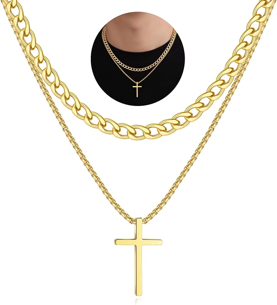 قلادة متقاطعة ذات طبقات: هذه القلادة الرائعة ذات الطبقات المتقاطعة كلاسيكية وعصرية للغاية، ويمكن ارتداء كل واحدة منها بشكل منفصل أو مع بعضها البعض. التصميم الكلاسيكي والبسيط يمكن أن يجعلك أكثر سحرًا، ويضيف لمسة مميزة وشخصية لمظهرك. هذه هي أفضل قلادة متقاطعة للرجال