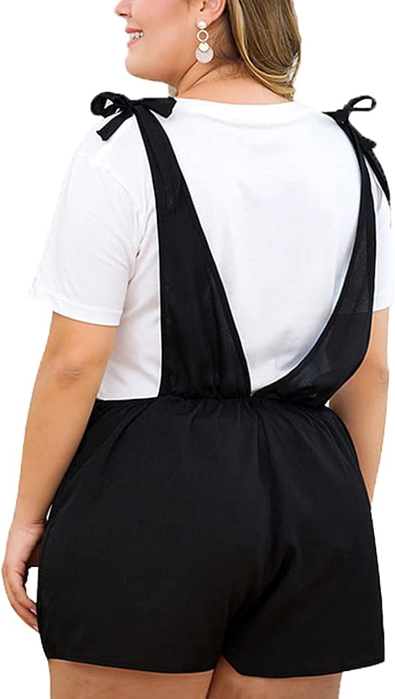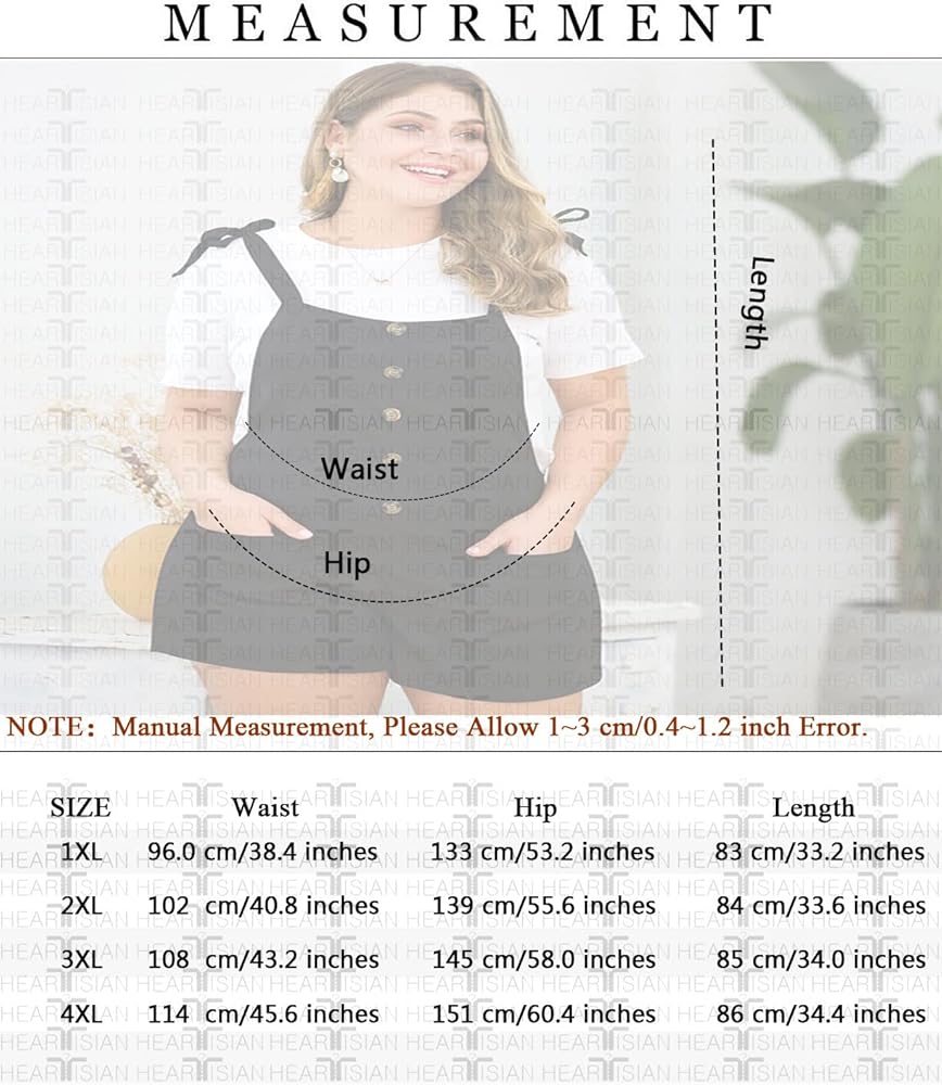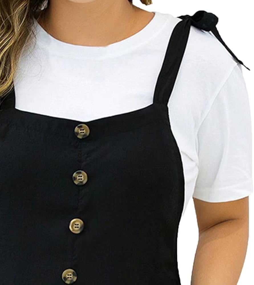 HEARTISIAN Women Plus Size Loose Short Overalls Bib Pants Relaxed Jumpsuit Solid Color Adjustable Strap Playsuit Comfy Workout Short Trousers Big Size Outdoor Rompers Soft Fit Onesuit Shorts with Buttons.