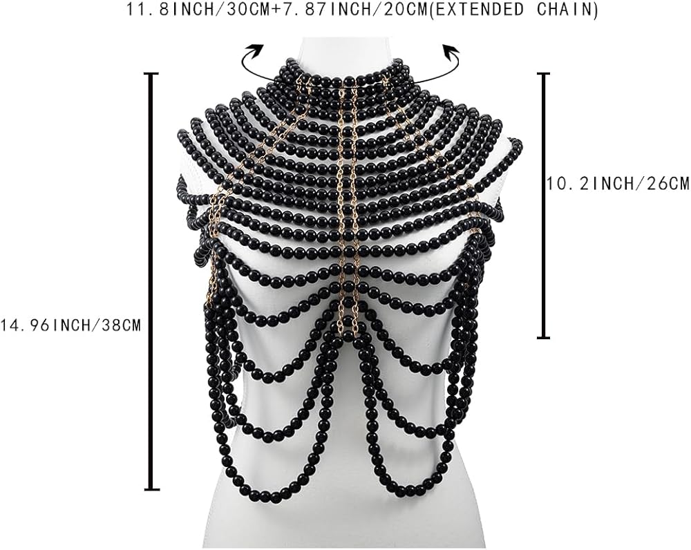 Shawl necklace body chain is made of handmade from white pearls,and its size is fit women well, It can be adjustable appropriately with the extended chain,You can adjust the necklace and chest according to your preferences.So you don't worry about the length