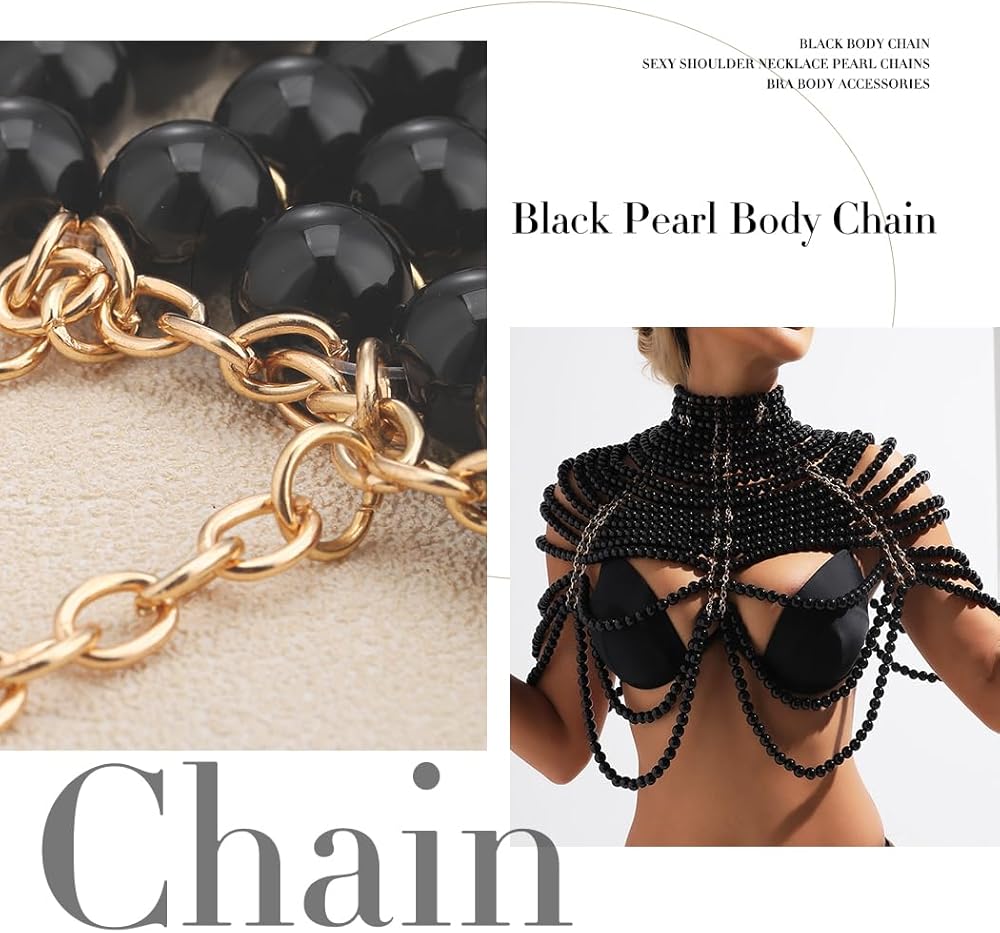 Pearl shoulder chain is made of environmental protection material pearl and zinc alloy chain,Not easy to fade,Body jewelry is sturdy and secure, Pearls are very shiny and consistent in color,It can be worn Over A dress Or A top ,The unique design will make you very attractive