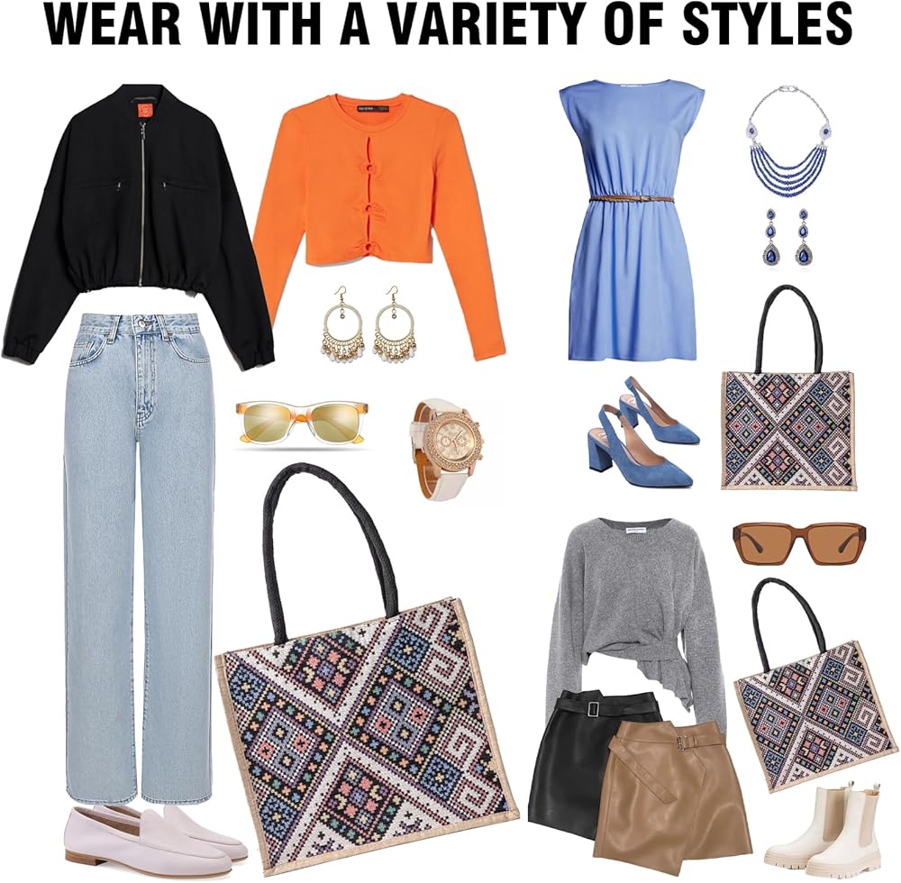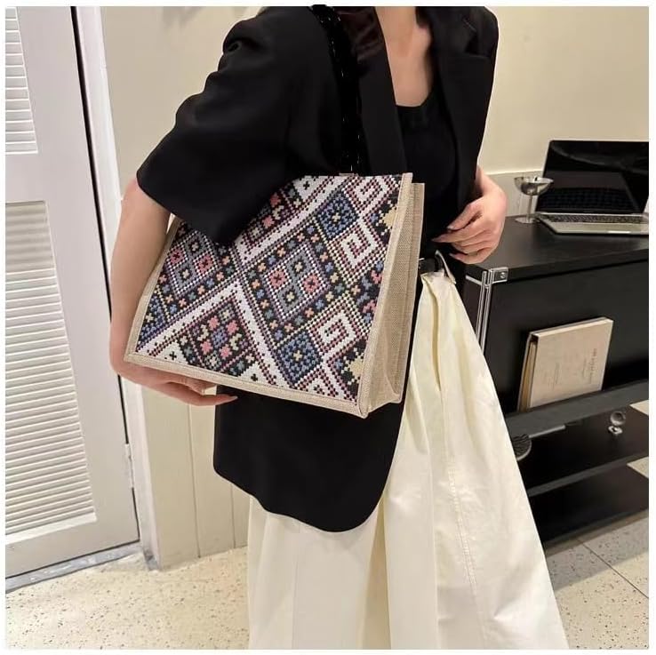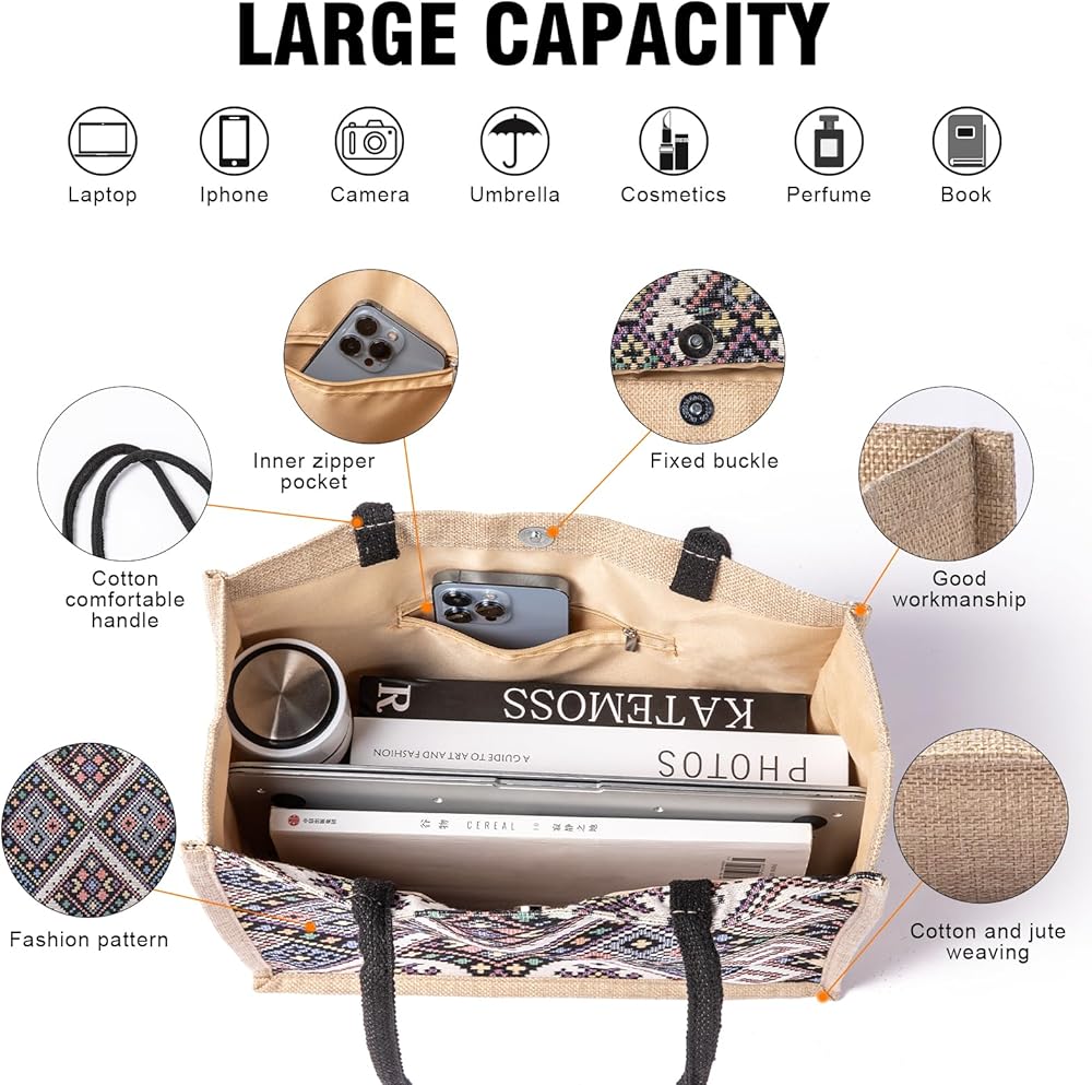 الحجم المثالي، مخيط من قماش الجوت الطبيعي والقطن، مع نمط نسج عتيق وحزام قطني، ناعم ومتين، خدمة طويلة الأمد، يجعلك مرتاحًا وأنيقًا، سواء في اليد أو على كتف واحد.
