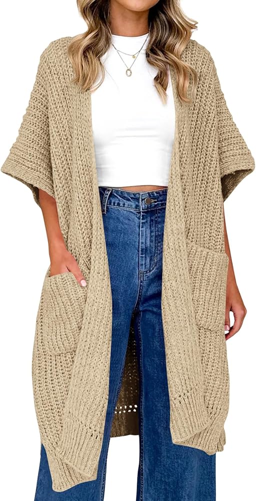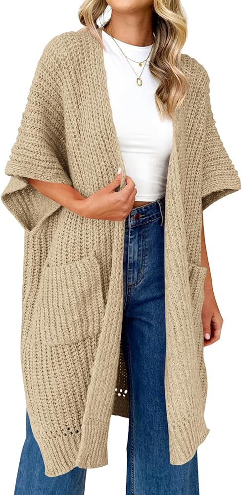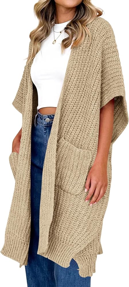 الميزات - مفتوح من الأمام، مقاس فضفاض كبير الحجم، طراز فضفاض فضفاض، جيبان جانبيان، خفيف الوزن، طول طويل بدون أكمام، معاطف سترة طويلة، سترات كيمونو للسيدات، ملابس خارجية محبوكة غير رسمية