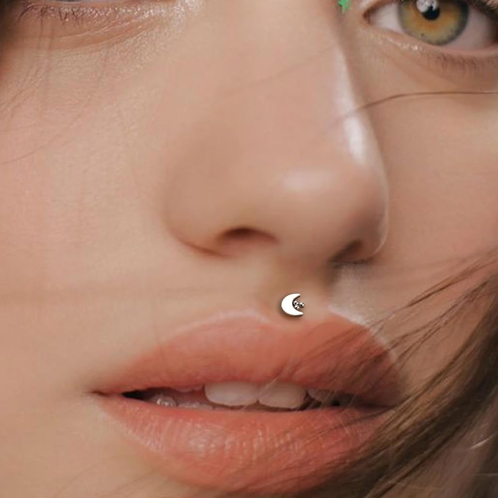 [مقاس المقياس] 16 غرام = 1.2 ملم؛ طول القضيب: 8 ملم؛ تصميم خلفي مسطح وملولب داخليًا، سهل الارتداء والخلع. مريحة للارتداء حتى وقت نومك.