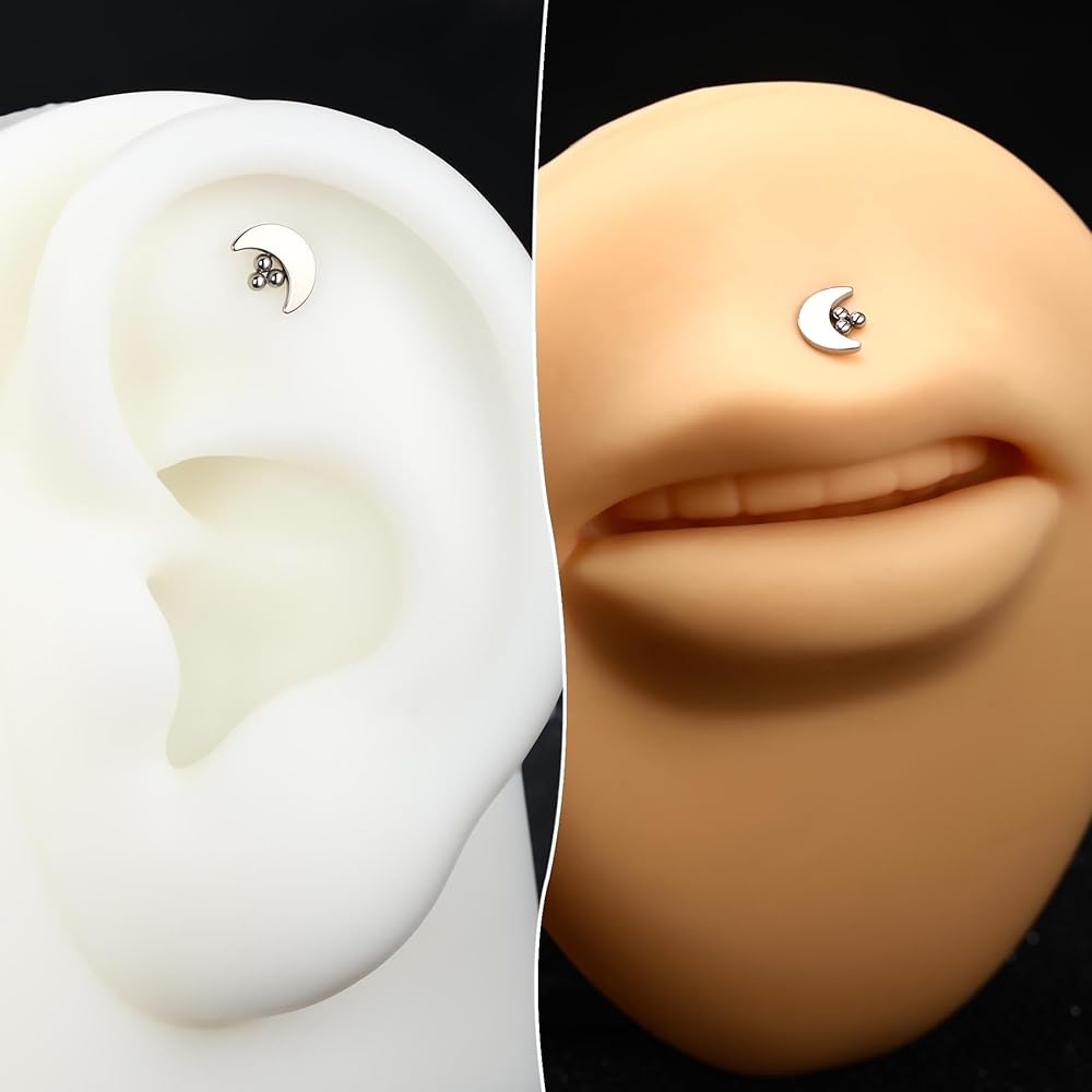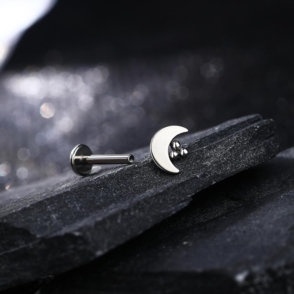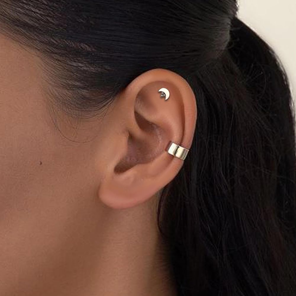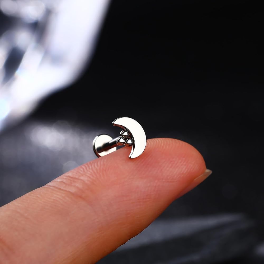[تصميم بسيط] اعتمد قرط الغضروف هذا على القمر محاطًا بتصميم الكرات، بسيط ولكنه لطيف، يمكن أن ترتديه الإناث والذكور.