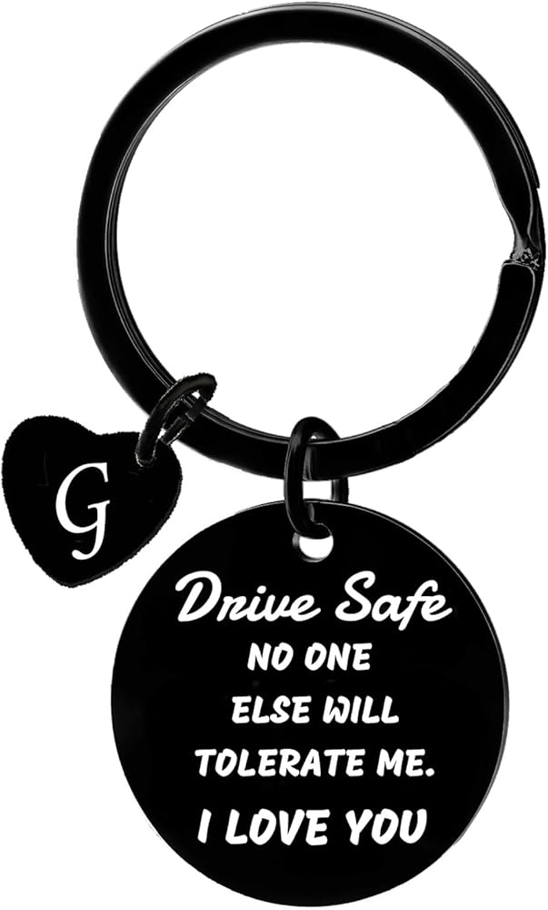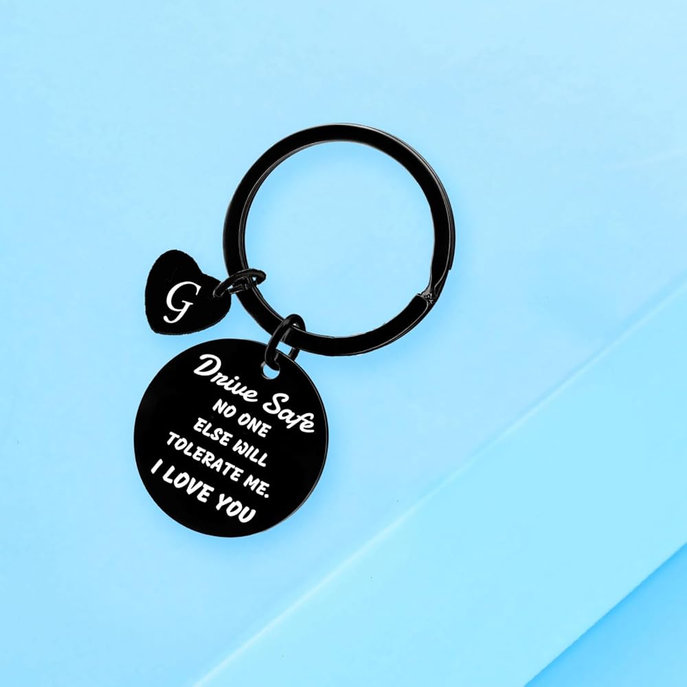Drive Safe Keychain Valentines Day Gifts for Boyfriend Husband Drive Safe Keychain No One Else Will Tolerate Me Keychain with Initial for Men Valentines Anniversary Gifts