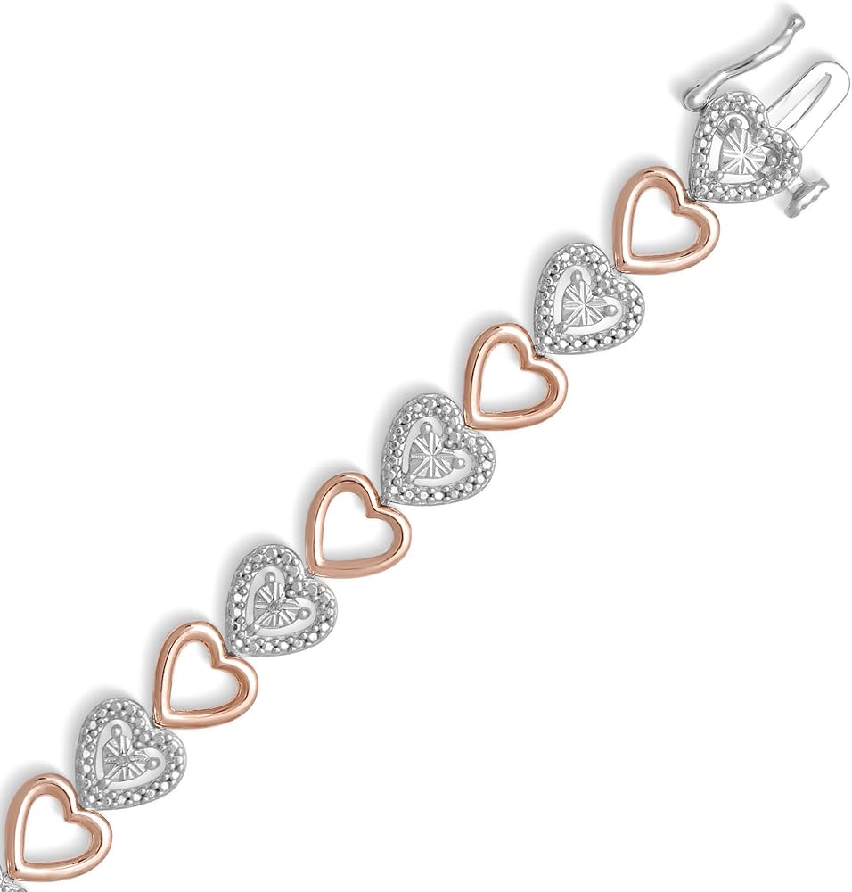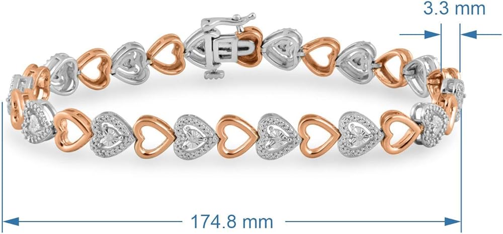- سوار بحلقات على شكل قلب من ميراكل سيت بلون ذهبي وردي فوق نحاس مرصع بالألماس الأبيض الطبيعي، 7.25 بوصة