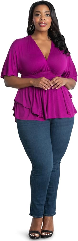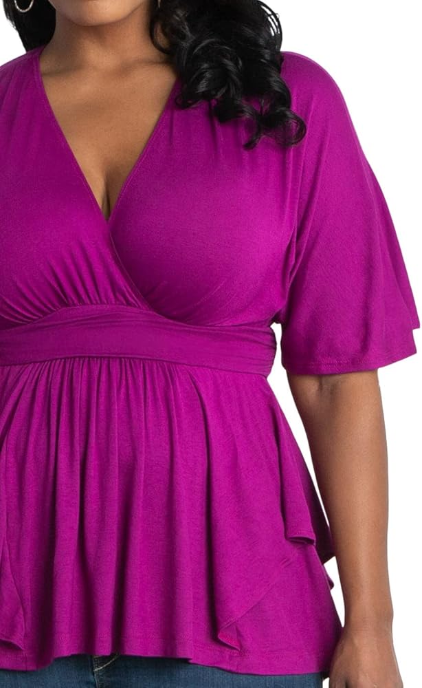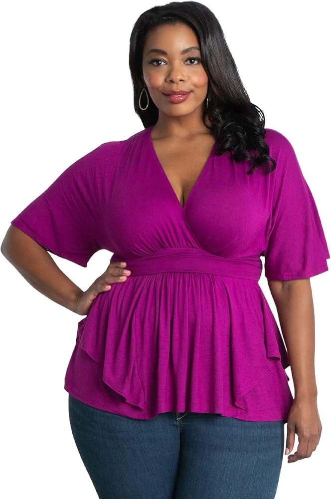 PERFECT FOR ANY OCCASION: This plus size top for women features an empire waist with a surplice neckline, dolman sleeves, and a slight peplum detail. Perfect for casual everyday wear, wearing to the office or dressing up for a date night or cocktail party.