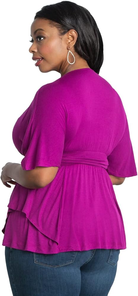 PLUS SIZE BLOUSE: Take a relaxing stroll in our Promenade kimono sleeve top. The crossover bodice and kimono sleeves on this plus size top allow for ample coverage without losing style and comfort.