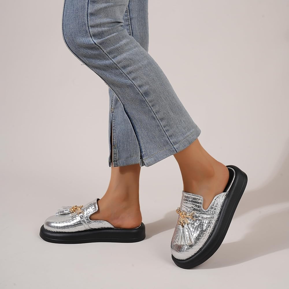 【تصميم عتيق】 يضيف التصميم المسطح للسيدات شرابات على شكل فيونكة وزخارف سلسلة معدنية، حتى تتمكن من الحفاظ على الموضة، ولكن أيضًا تجعل الحذاء يدوم طويلاً، مما يمنحه عمرًا أطول. يمكن ارتداؤه مع أي زي تقريبًا، بفضل تصميمه المميز الذي يساعد على إبراز ساقيك وإبراز مظهرك العصري!