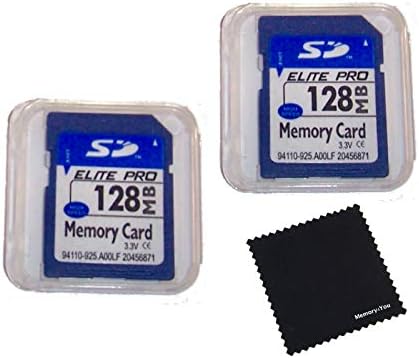 ايليت ميموري قطعتان من بطاقات الذاكرة 128 ميجابايت متوافقة مع بطاقات SD سعة 128 ميجابايت، عبوتان من بطاقات الذاكرة وحافظات مع قماش من المايكروفايبر، متوافقة مع جميع اجهزة SD