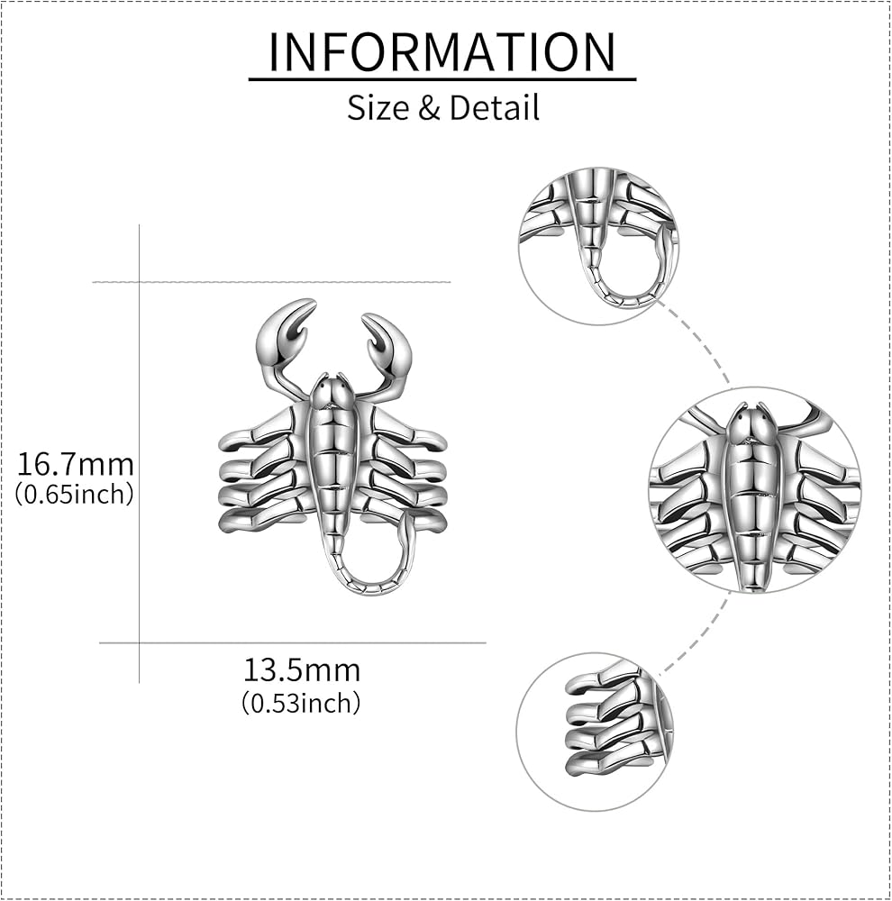 • [Material]Scorpion earring is made of 925 sterling silver, which is hypoallergenic, tarnish resistant, nickel-free, lead-free, cadmium-free, suitable for long-term wear, especially sensitive one. The cuff earring is made of electroplating, you don't have to worry about it turning black or green.