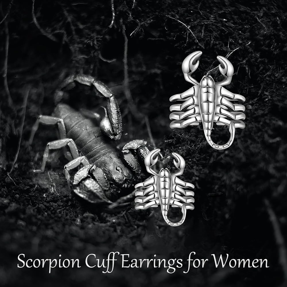 Scorpion Earrings Sterling Silver Scorpion Cuff Earrings for Women Punk Scorpion Jewelry Gifts for Men Women