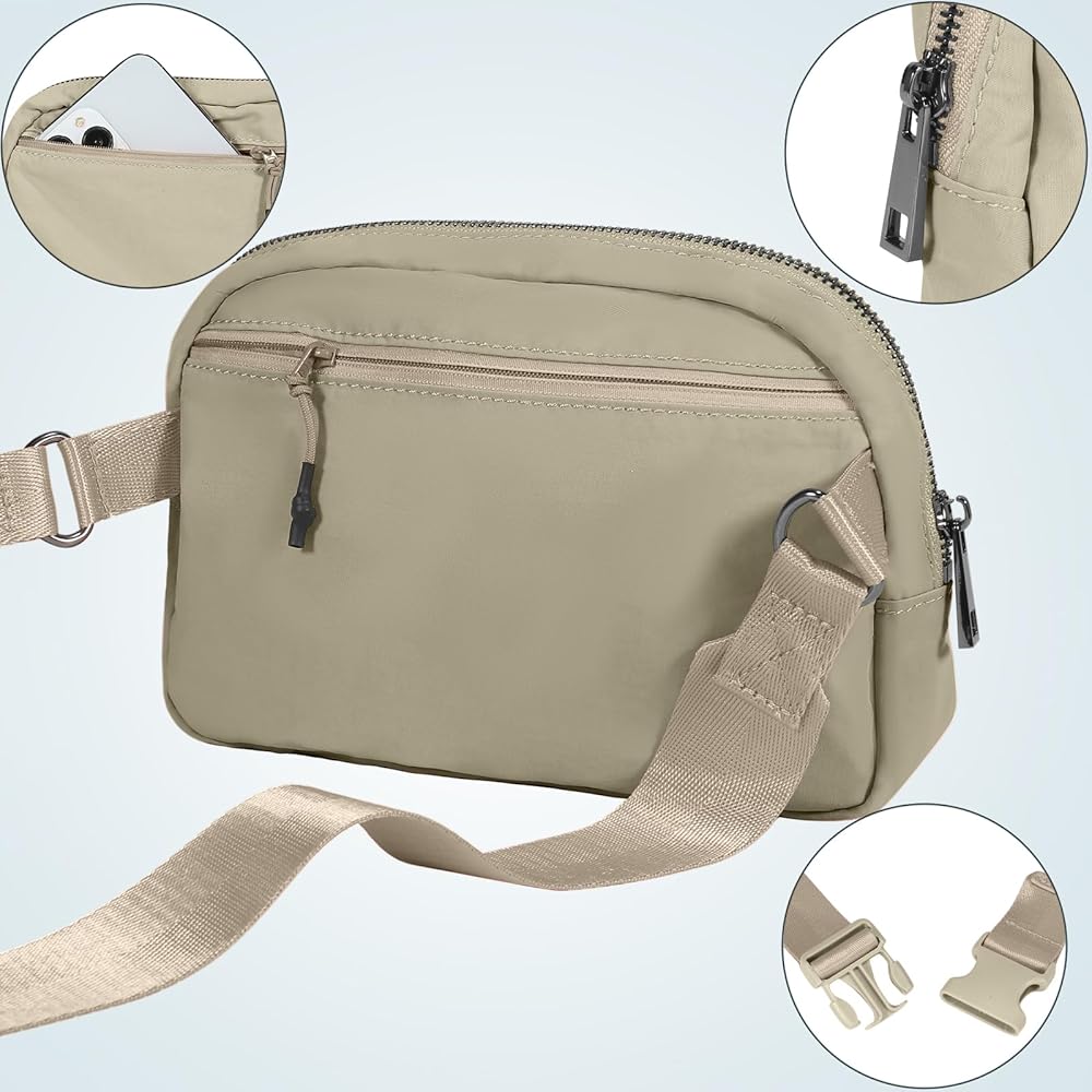 مواد عالية الجودة -- حقيبة الحزام مصنوعة من نسيج ناعم، وحزام كتف ناعم سميك لتحسين راحة الارتداء وتقليل الاحتكاك والتكديس على الملابس، مريحة في الارتداء وخفيفة الوزن، مع سحابات نحاسية عالية الجودة ومثبتات من النايلون لمزيد من المتانة.