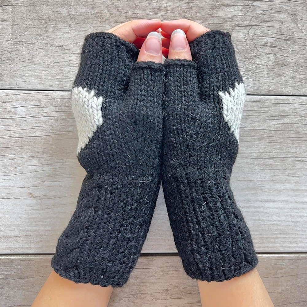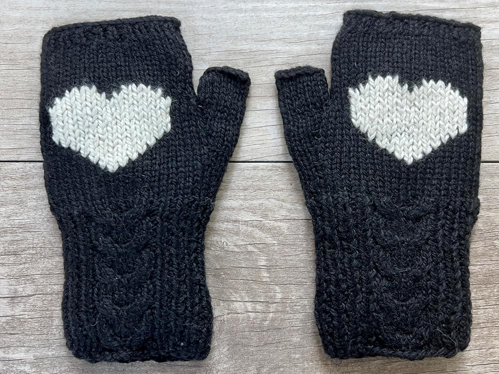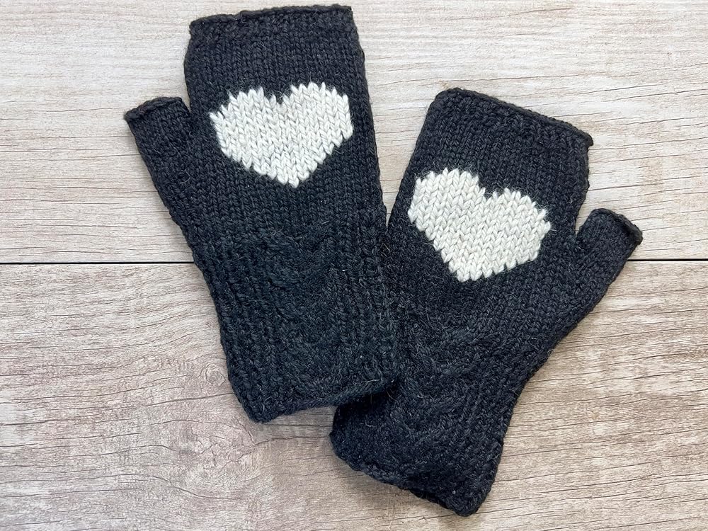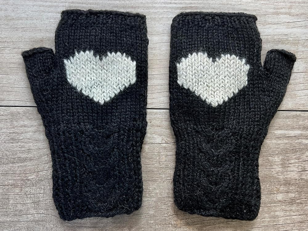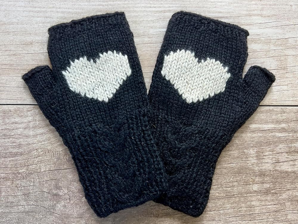 Heart Fingerless Cable Gloves Fleece lined Alpaca Hand Warmers. Hand knitted style created from sustainable Alpaca Wool sourced in the Andes.