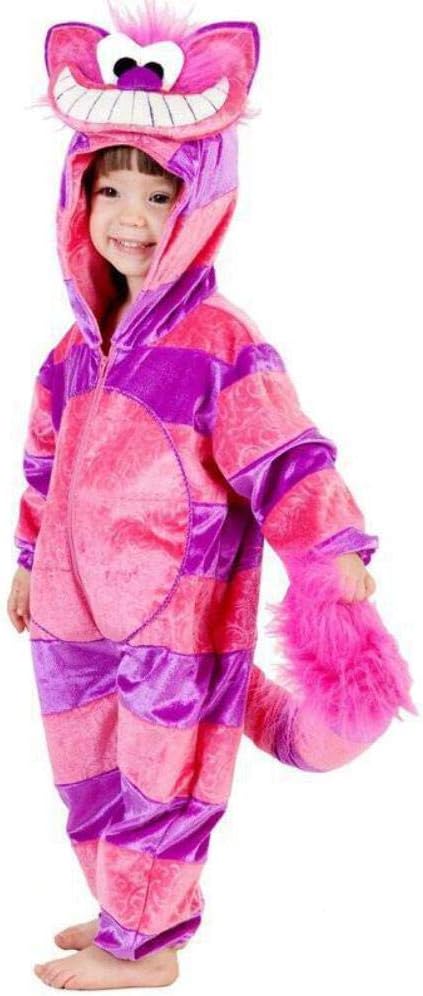 Cheshire cat deluxe Read before buying see Princess Paradise size chart recent reviews and Q & A before making selection costumes are sized different from clothes and vary by design/style The smiling cat face on the hood is designed with fabrics of white and black plush pink and purple velour and a tuft of pink faux faux fur This rendition of that crafty cat from wonderland is sure to bring a grin to your face when your child puts on this one piece jumpsuit Made in alternating bright pink and purple stripes of soft plush fabrics this costume includes a long puffy tail and of course that cheesy Cheshire cat grin to round off the effect Bringing imagination to life Princess Paradise has a mission to be a leading costume company in quality and design and in employee satisfaction because happy workers make fun costumes Princess Paradise creates costumes for newborns to adults something wonderful for every family member Our costumes are made from unique and trendy fabrics that will inspire your imagination and delight you at the same time