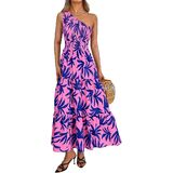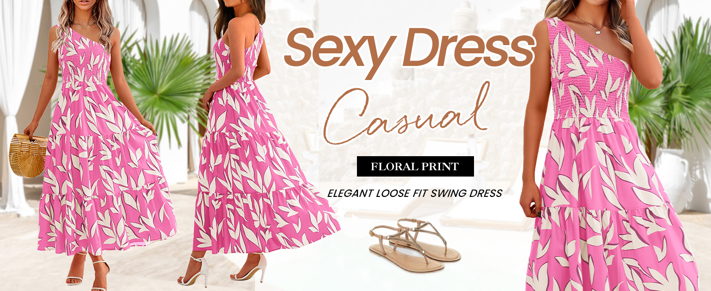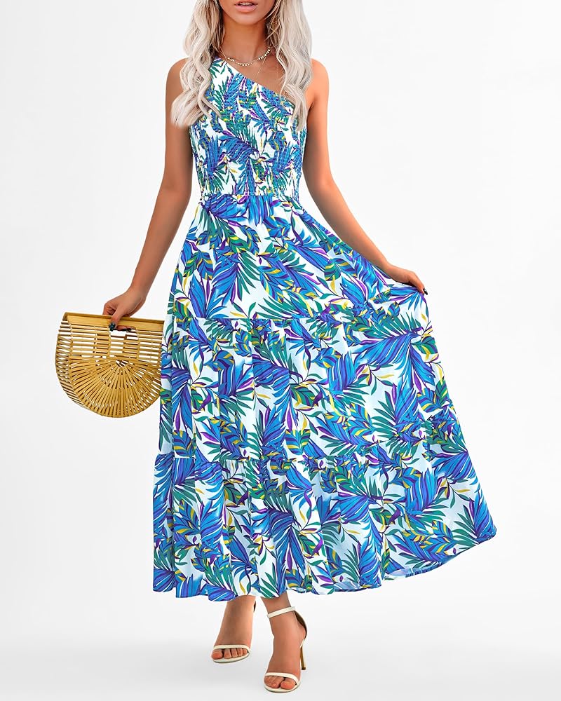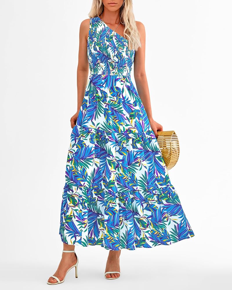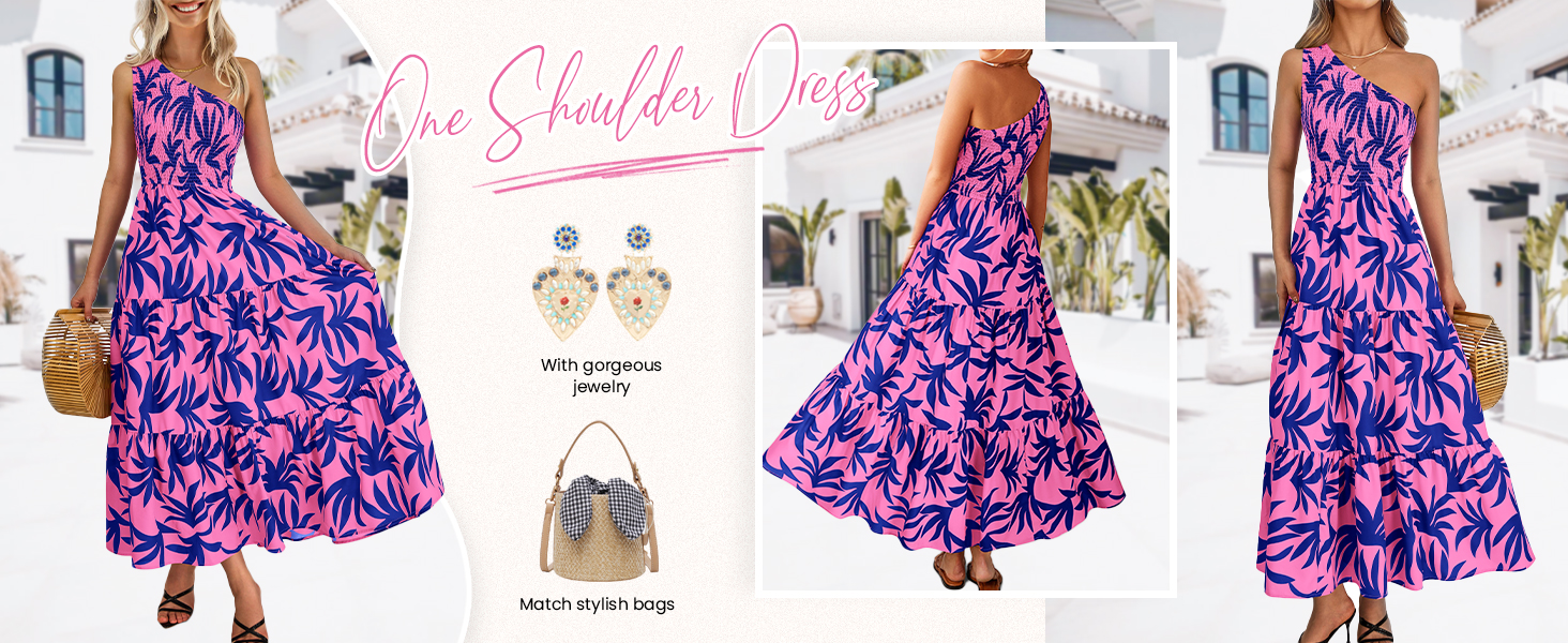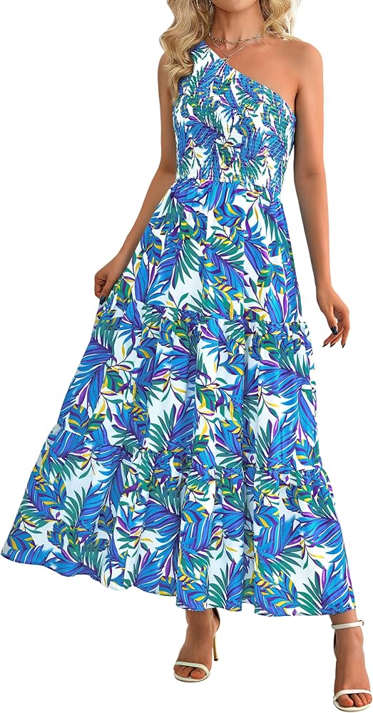 تصميم أنيق: بتصميم كتف واحد، يظهر فستان بوهو ماكسي العصري مثيرًا وأنيقًا، مما يجعلك مميزًا بين الناس. تصميمات الصدر المدخن والخصر العالي لا تعزز من منحنياتك فحسب، بل توفر أيضًا ملاءمة مريحة وجذابة. فستان الشمس النسائي الفضفاض يعرض طباعة أوراق الشجر اللافتة للنظر، ويضيف لمسة مبهجة وحيوية إلى المظهر العام. ارتدي الفستان الطويل المتأرجح على شكل حرف A واستمتعي بالراحة والأناقة التي يوفرها